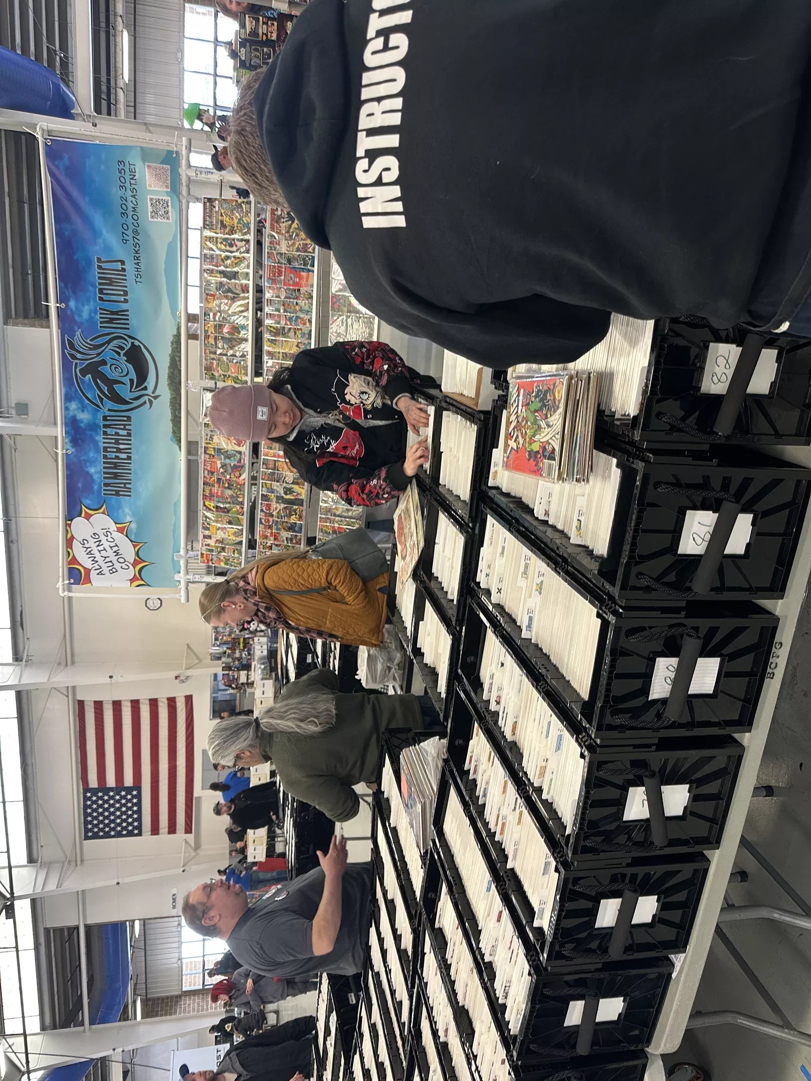 Hammerhead Ink Comics is a Colorado company that’s online-only and mainly travels to shows just like this to sell its wonderful comic wares. And it does an admirable job of it, too — not only was this the biggest booth at the show in terms of floor space, but the boxes were all meticulously organized alphabetically by title. And that ponytailed gentleman speaking with the Hammerhead Ink owner abo ve is none other than AC Canales, a local Denver artist who works with Vision Comics, among other gigs. This was one of the busiest booths at the event — and deserved to be.