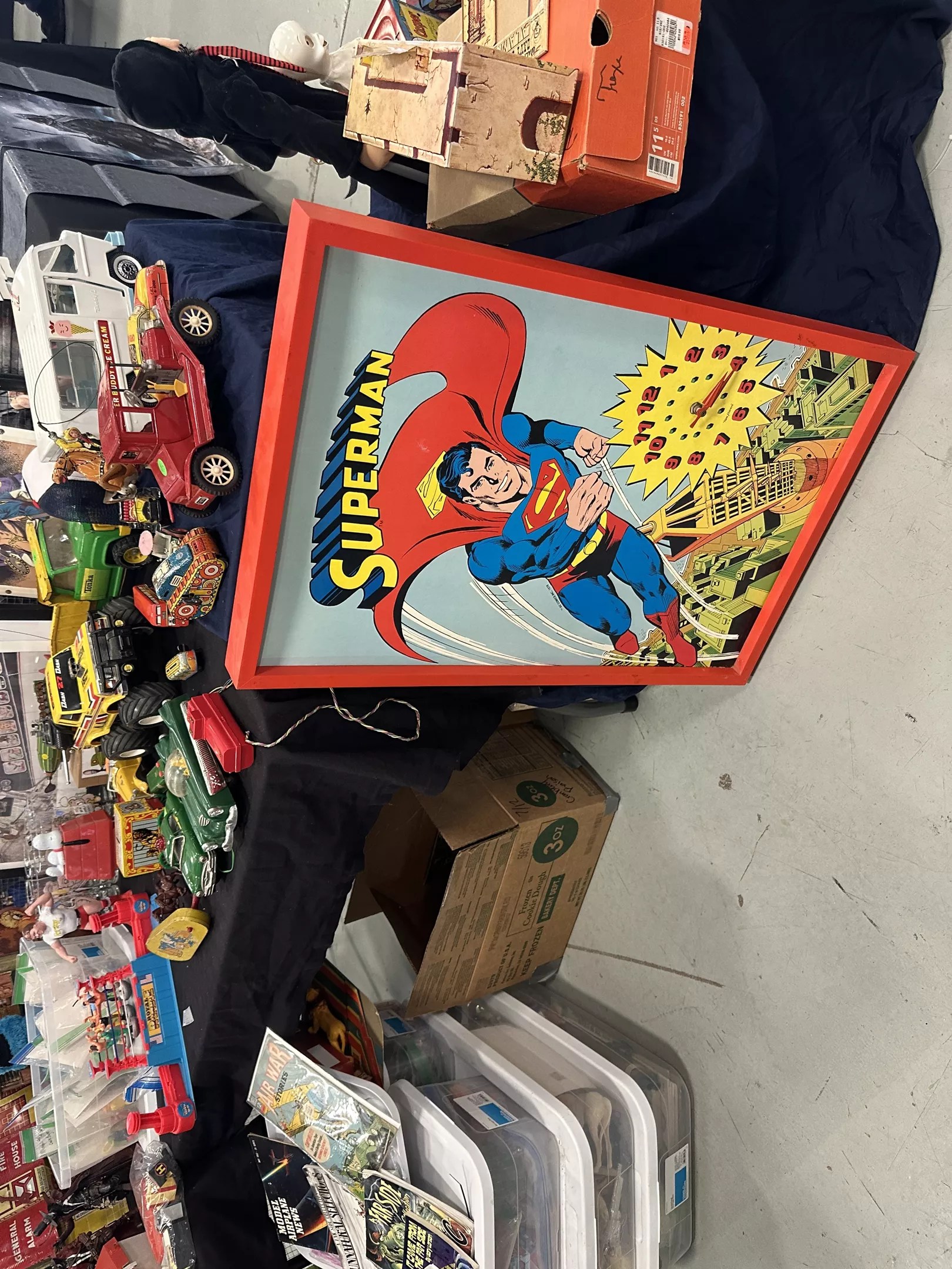 Granted, a lot of the toys at shows like this are things you’ve seen before, if not for a very long time. That’s the draw, of course — they tickle a memory that you haven’t accessed in a month of Sundays, and there’s the dopamine rush. Also invoking the happy hormones is that thing that you run across that you’ve never seen before — like this humongous Superman poster-clock made by New Haven back in the late ’70s. It was produced in such low numbers that it’s super-rare, if not super-pricey. But all the better for a collector to hang on the wall, right? We hope someone bought this sucker, because Supes deserves a place of honor.