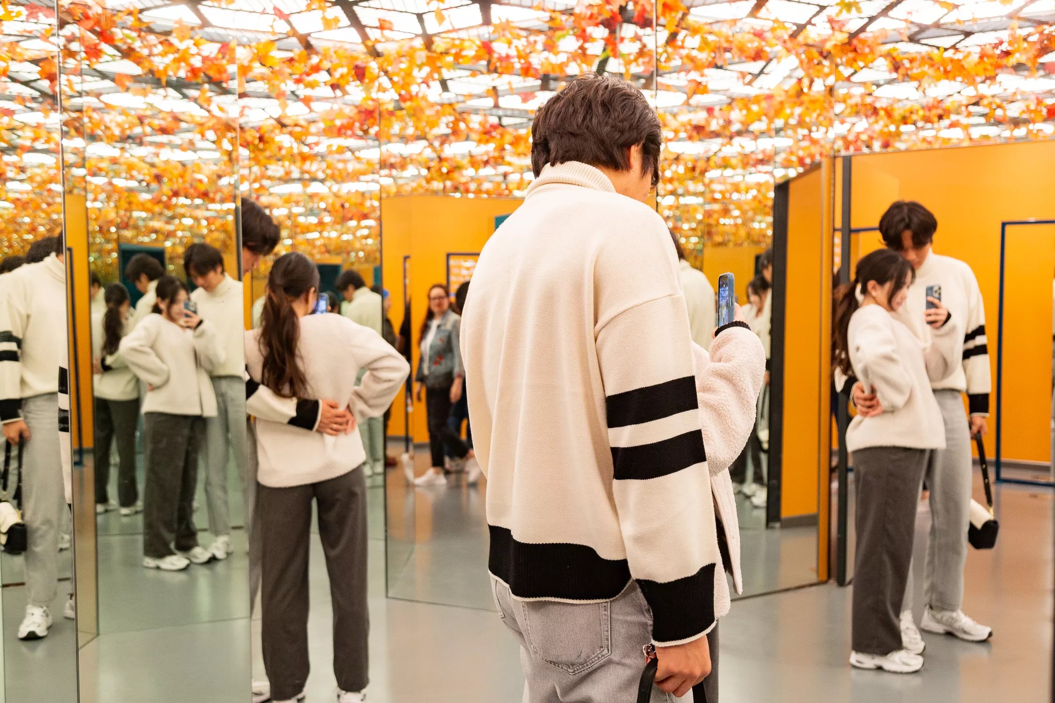 This room evokes Yayoi Kusama’s famed “infinity rooms,” which use mirrors to cast innumerable reflections.
