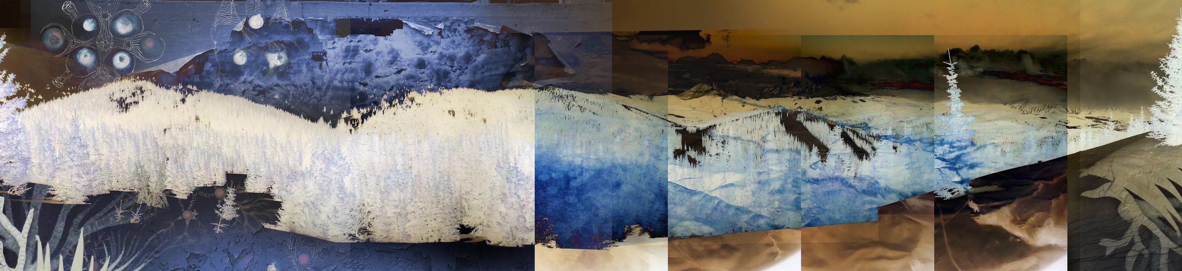 Kia Neill, “Perimeter,” digital collage of photography, drawing and painting. Archival aluminum print, 2016.