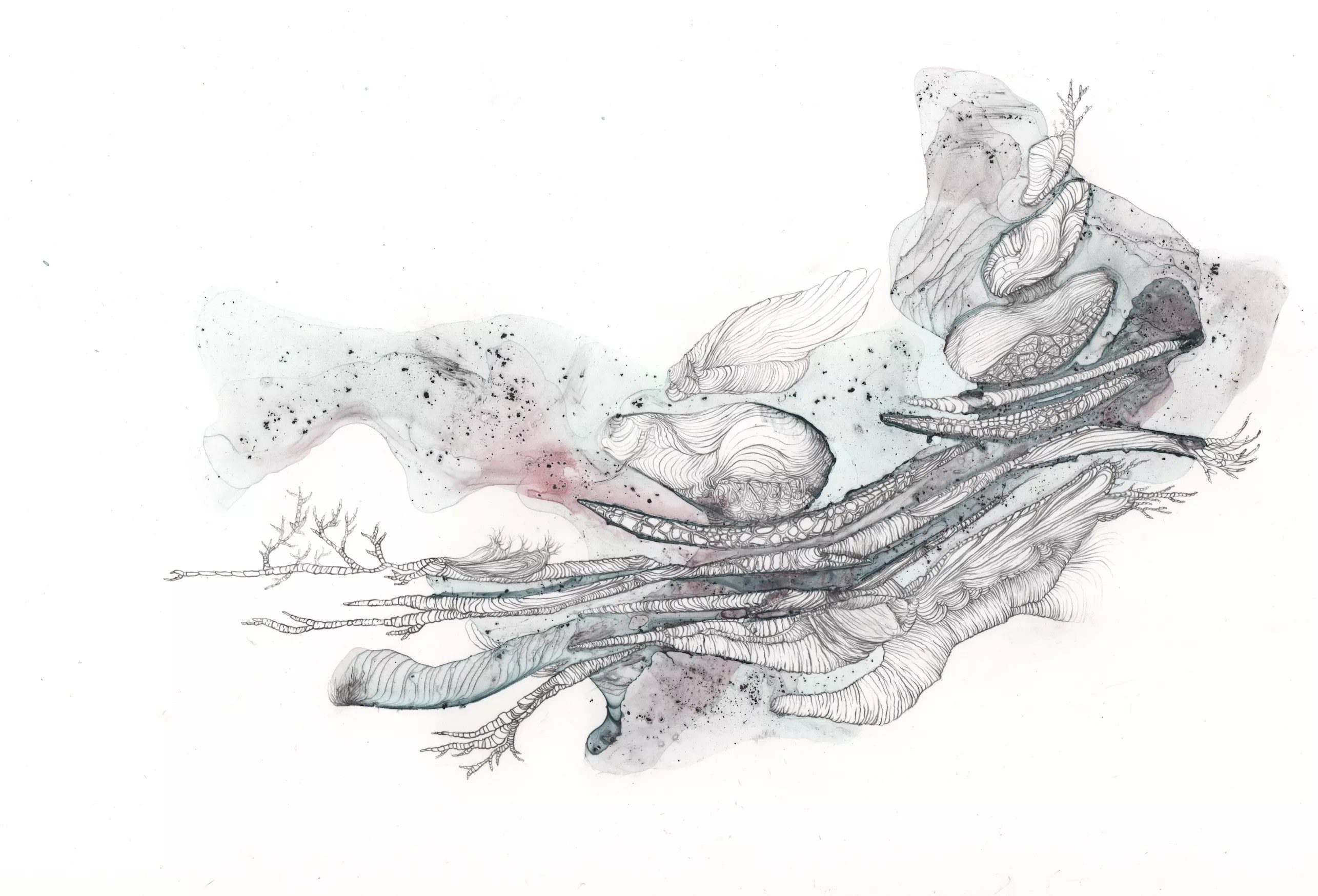 Kia Neill, “Fragmented Form No. 2,” graphite, acrylic, ink, gouache, on polypropylene paper, 2013.