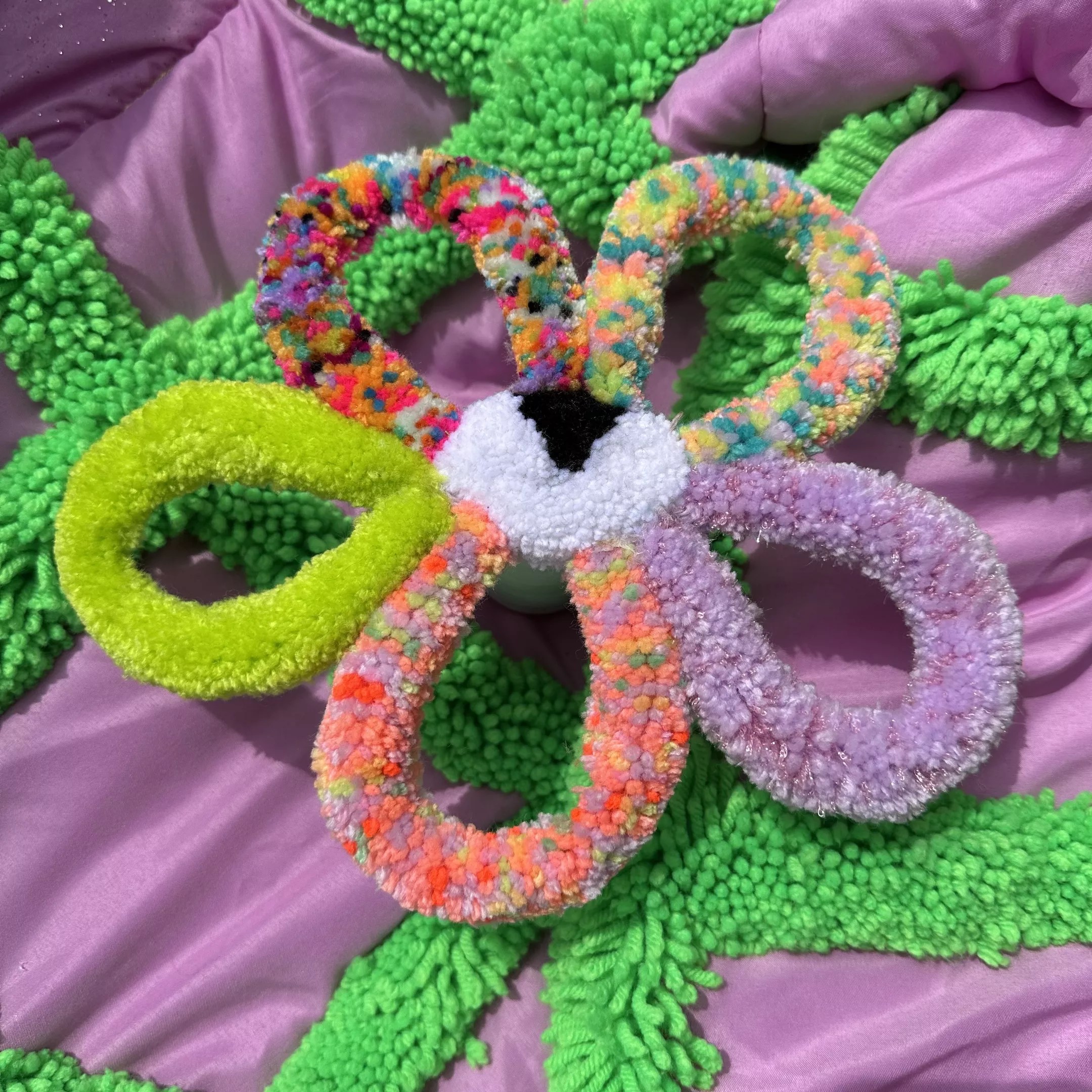 Fischer’s yarn art is also a coping mechanism. When she lived in cloudy and cold Wisconsin before moving to Denver after finishing her degree about six years ago, she was “a sad, sad girl,” she says. “When I finally started playing with yarn and playing with art, I got so addicted that I was staying in every weekend, spending all my time creating art and making a lot of new coping skills. I was making healthy choices. It has literally saved my life. It brings me so much joy. I feel so grateful that I found it.”