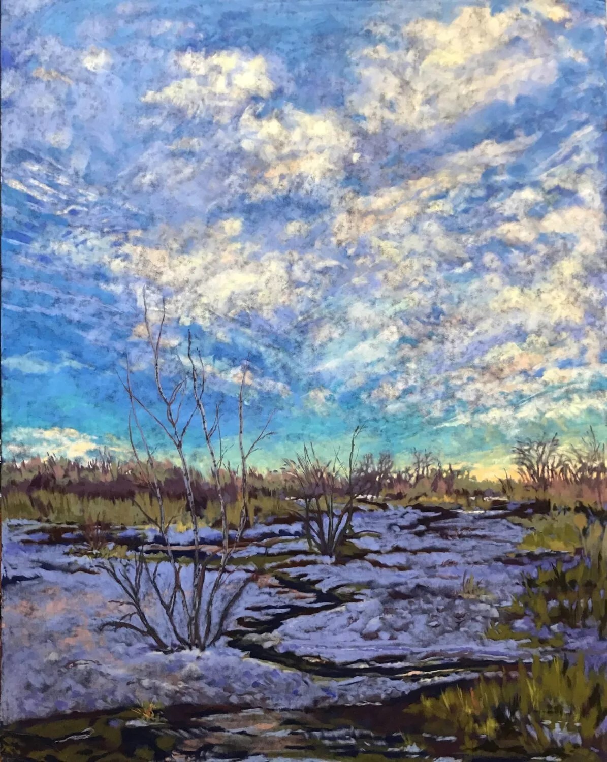 Ivadell Marie, “Sunrise Creek,” pastel on suede.