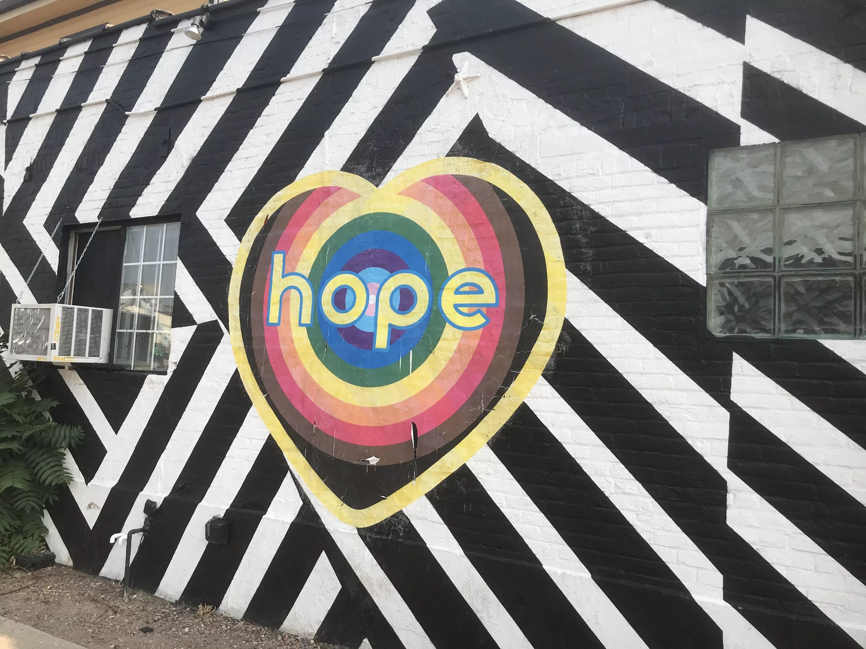 Artist and wheat-paster Koko Bayer takes over Dateline for the Hope Shop, where she’ll be selling multi-sized versions of her familiar hope heart imagery — stickers, prints, wall art and more — for the holiday season.