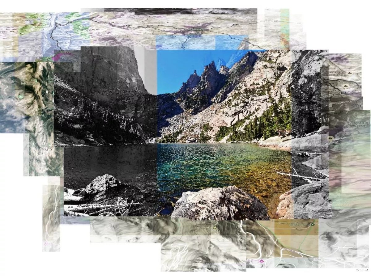 Walker Fine Arts’ latest sextet of exhibiting artists are examining the environmental world in the usual variety of mediums and styles. For instance, photographer George Kozmon appreciates the immediacy and shapes of the landscape by layering photography and topo maps on acrylic sheets for a sense of depth, while Zelda Zinn, also a photographer, treated layers in another way, by collaging natural imagery in various materials over her stark photos of the frozen landscape of Svalbard in the Arctic Circle. Going one step beyond, Bryan Leister engages science, visuals, sound and augmented reality in his video work for the show. As you can see, this is a show about layering, landscape, looking at changes in the environments, charting weather patterns, sounds and other occurrences in the atmosphere. You’ll want to have all your senses switched on at WFA.