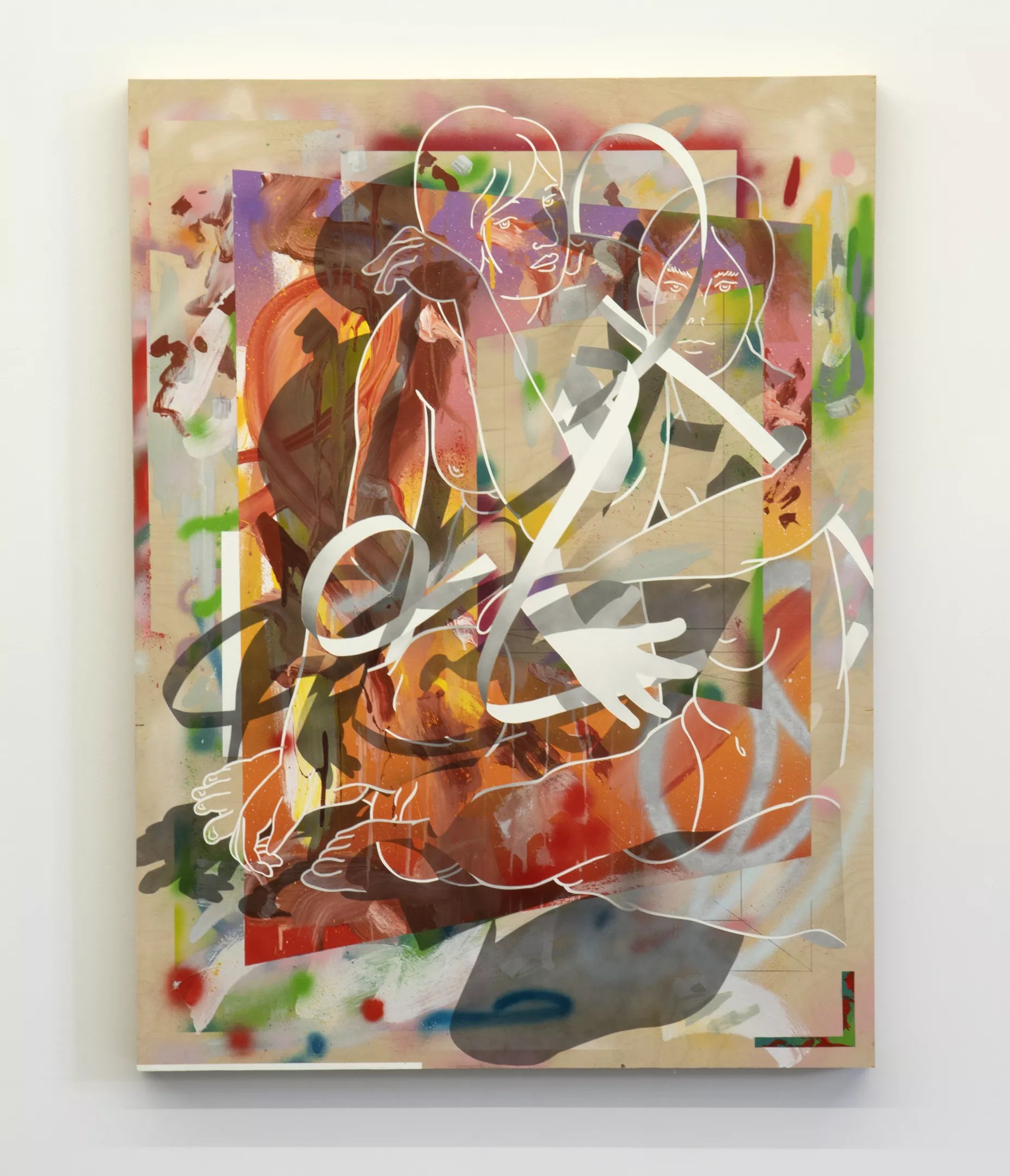 Diego Rodriguez-Warner, “Between the Sweet Basil and the Mint, Lola Sings,” 2022, latex paint, spray paint on panel.
