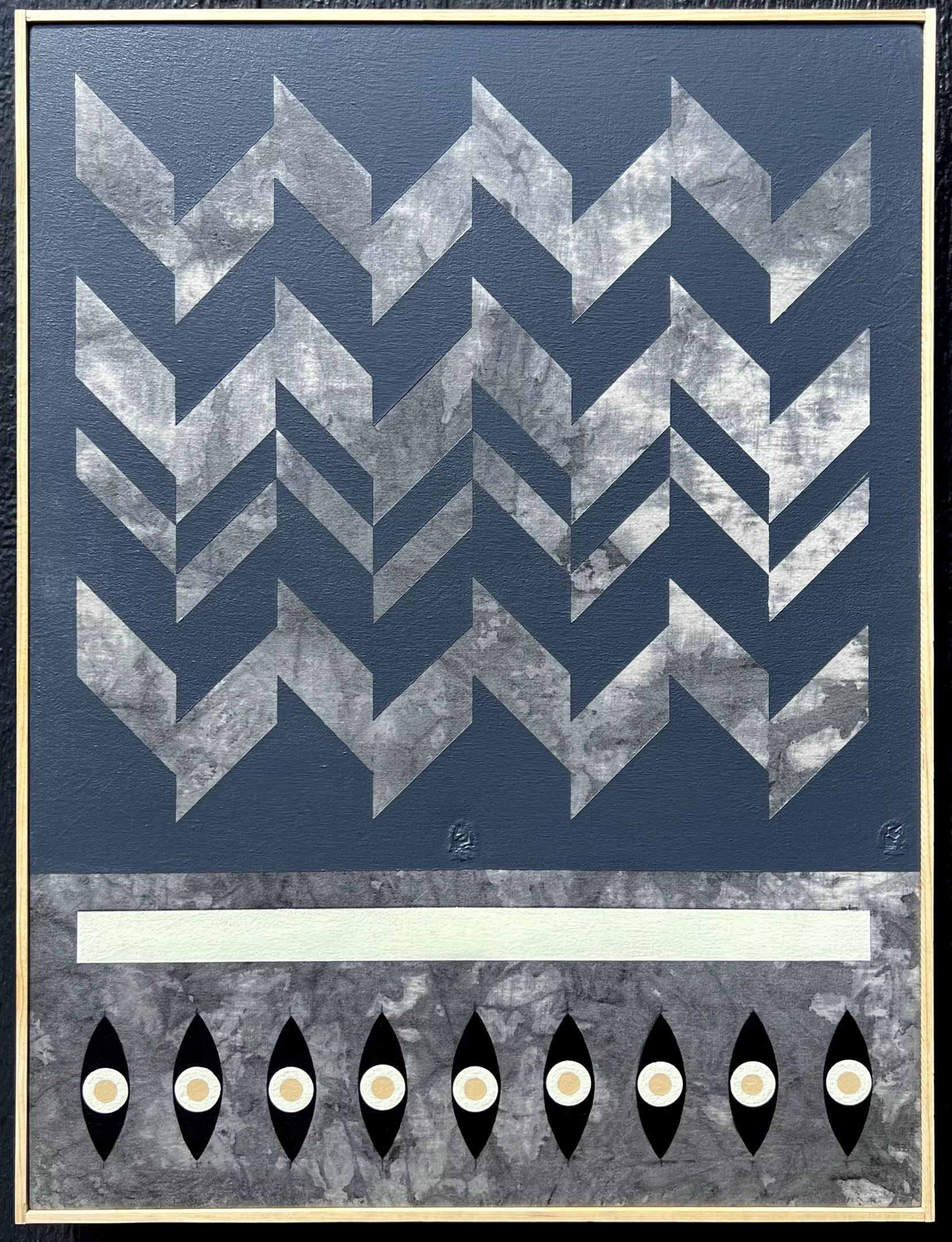Diego Rodriguez-Warner’s new solo show, Iteratives, at Rule Gallery, will surely be one of the best exhibitions along Santa Fe Drive this summer. Denver-based artist Rodriguez-Warner allows a burst of life to emerge in dimensional, collaged forms desperate to escape the flat panel, representing the life spirit of García Lorca’s concept of “duende.” Part abstract and part representational, with outlined figures floating through the composition, Rodriguez-Warner’s quixotically titled works are both static and constantly in motion.