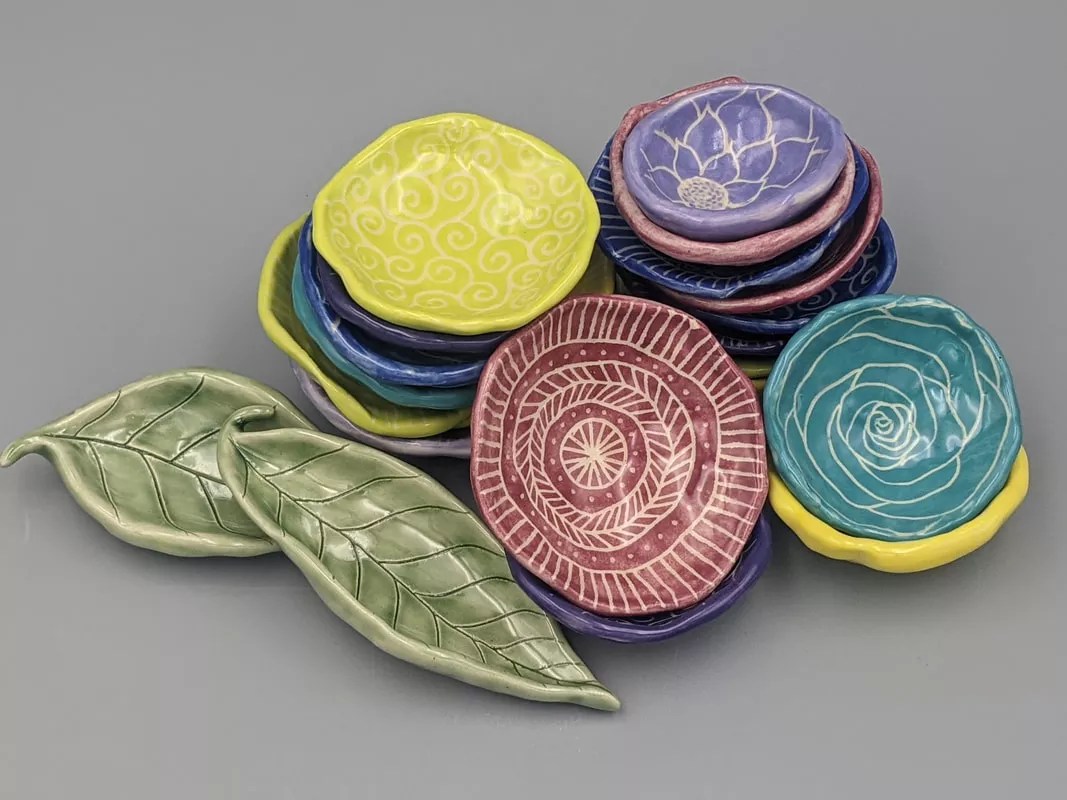Guest artist Jennifer Niccolai shows off her beautiful pinch pots at Commonweal.