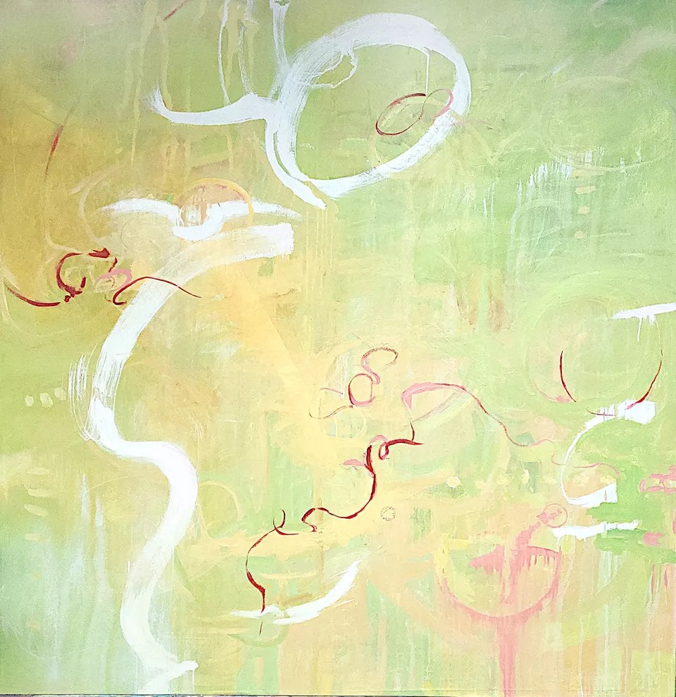 Im Augenblick, just one of many shows opening at the new Hub at 40 West, showcases new large-scale abstracts by Mark Brasuell, who utilized Chinese chop stamps and personal language to untangle the hidden meanings of writing and symbols. Jennifer Alta Hope also contributes abstract works that express the physical act of applying paint to canvas.
