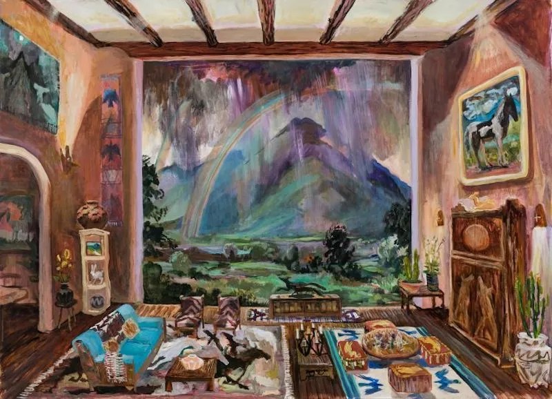 Johnny DeFeo’s Soft Eye is in part a paean to a sweet horse he bought in an online auction, while also addressing the landscape, history and buildings of the Southwest, as observed from his home in Taos, New Mexico. This representational view goes back eons to imagine the wild land where only untamed creatures roamed before it was overrun by human civilization.