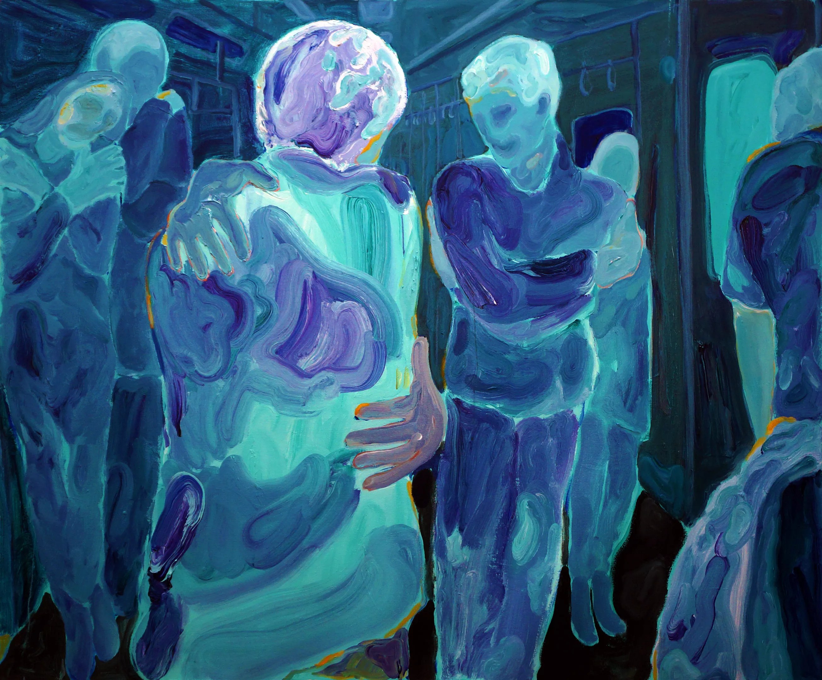 Xi Zhang, “Safety Belts,” 2021, acrylic on canvas.