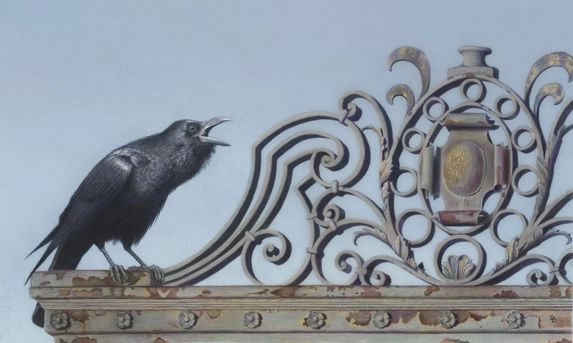 Dorothy DePaulo, “Raven,†colored pencil on drafting film.