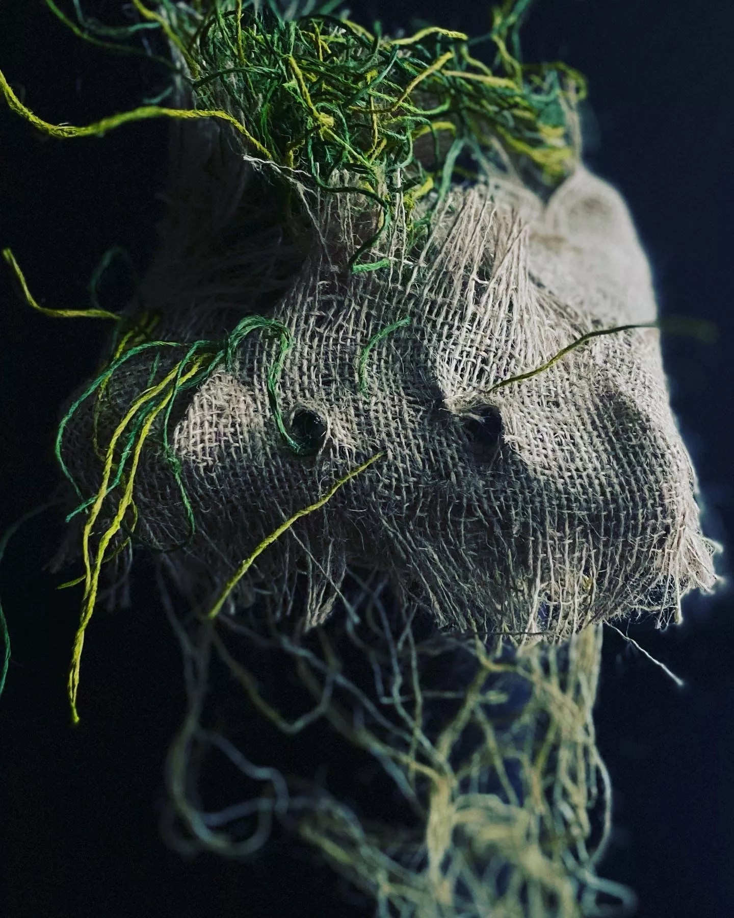 Megan Morgan, “Germinate,” burlap sculpture with acrylic.