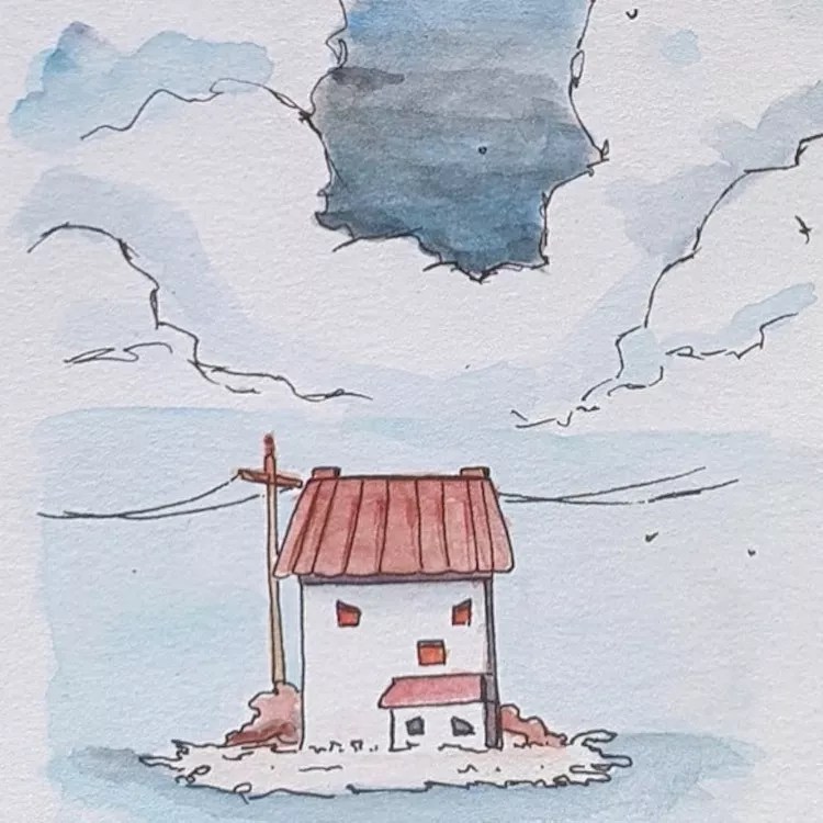 Joshua Houska, “Our Thoughts,” watercolor and ink on paper.