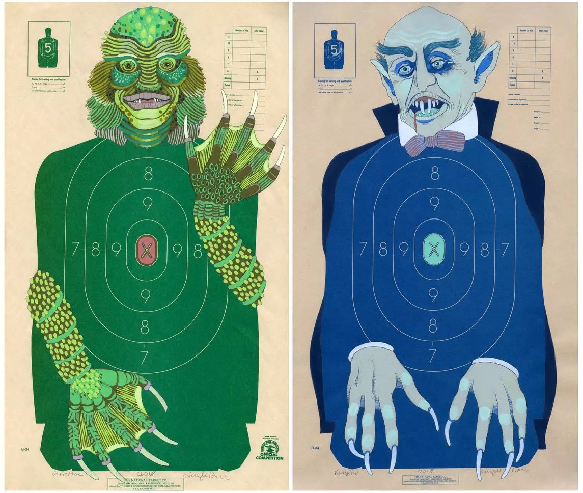 Sarah Bowling and Mario Zoots: Point of Friction Jennifer Davis, “Creature & Vampire,” paper shooting targets. Jennifer Davis