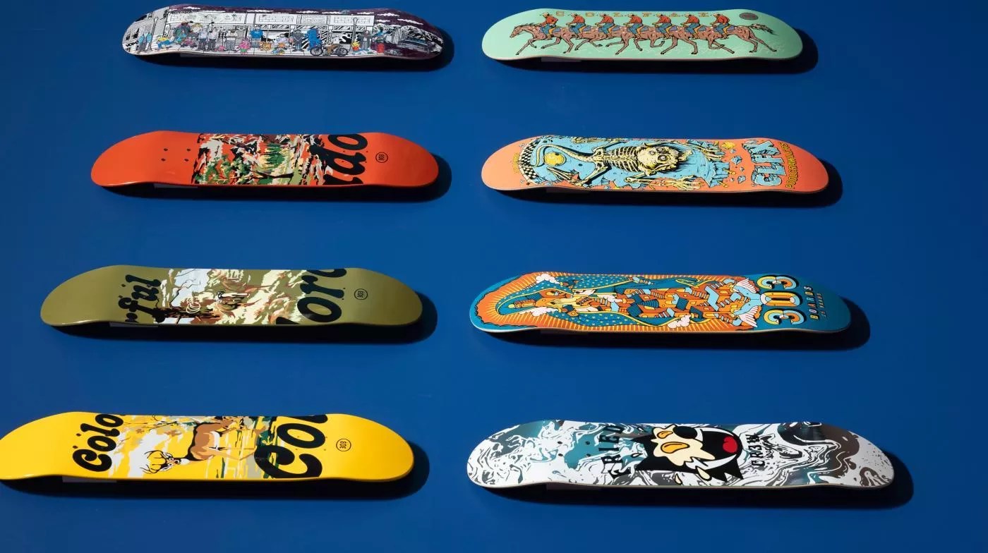 A sample of skate decks painted by Indigenous artists at the Denver Art Museum.