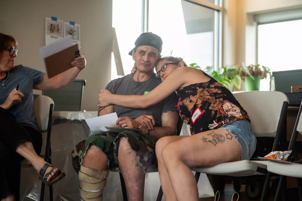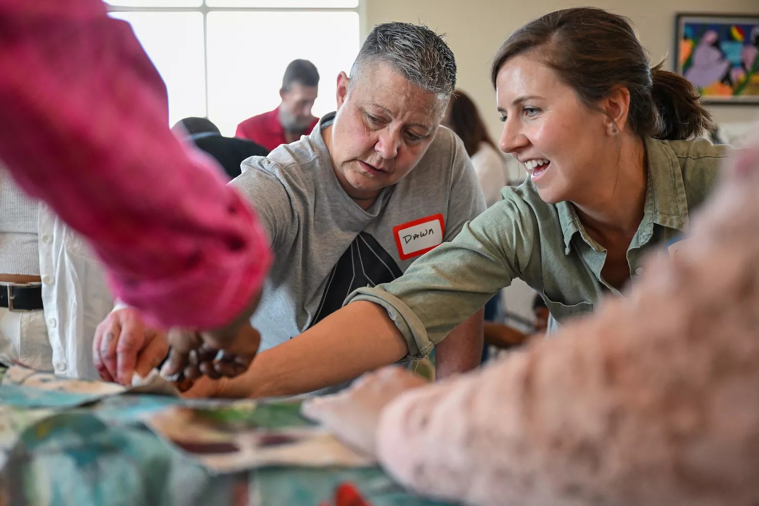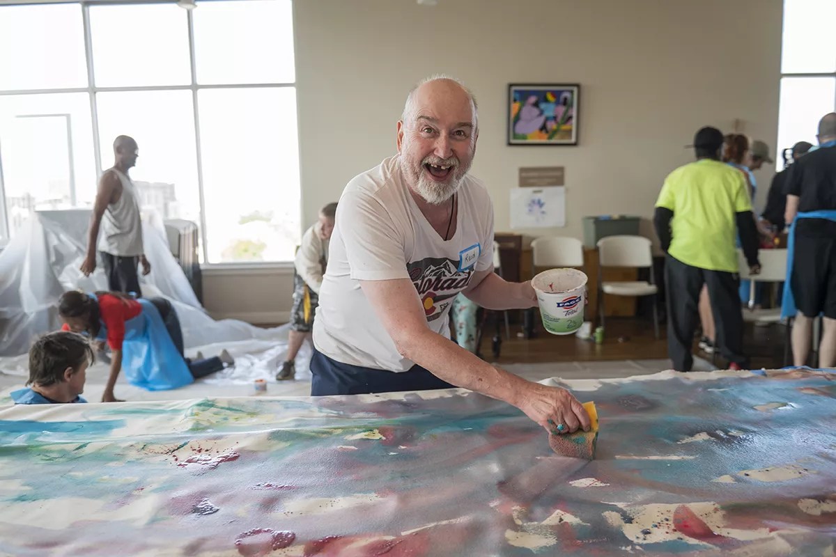 When artist Emma Balder set up two thirteen-foot blank canvases for residents of the St. Francis Center, had them paint them in bright colors, and then asked them to rip up the paintings and rearrange the pieces, Darrin Johnson saw a metaphor for life.