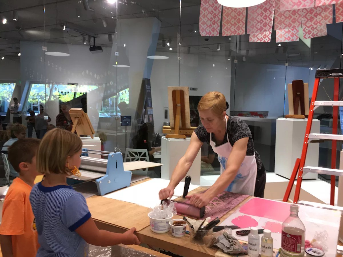 Ghormley leading a printmaking activity with visitors as part of her Children