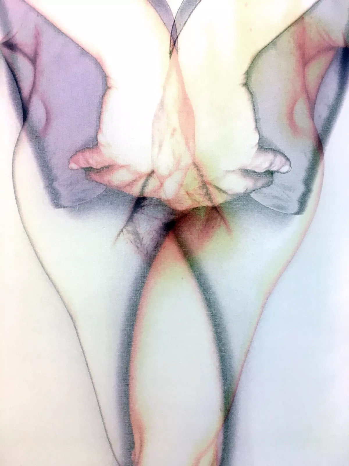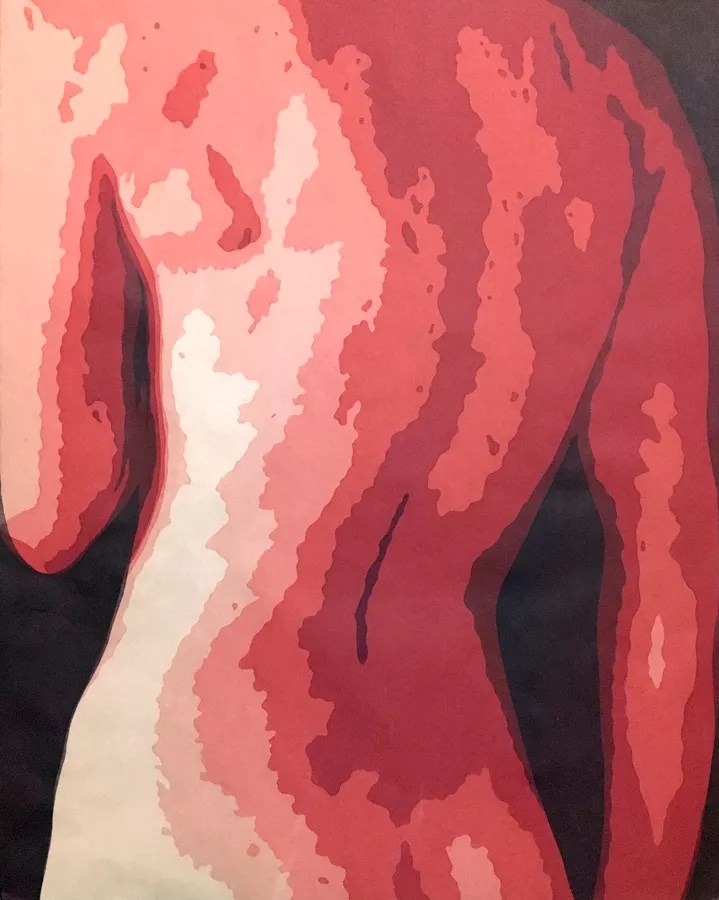 Jennifer Ghormley: In my personal artwork, I am intrigued by so many things about the figure, the body, the human shape and form, both inside and out; a certain gesture, accidental poses, our delicate but incredibly strong skin, things that sag, body hair, wrinkles, folds, freckles and moles, scars, bruises, veins, the wide range of fleshy colors, membrane-like unknown substances, the way arm hair stands straight up when we get goosebumps, elegant soft light as it falls across a form, mysterious shadows created by ambiguous body parts, the sensation of a lover’s touch, the spark of energy and connection, the contrast of a solitary soul, never-ending analysis of the construction of gender and sex. All of these things inspire and motivate the creative urges in my personal artwork. I begin by taking photographs and translate them through various printmaking processes, primarily woodblock, screenprint, stencils and trace monotype.