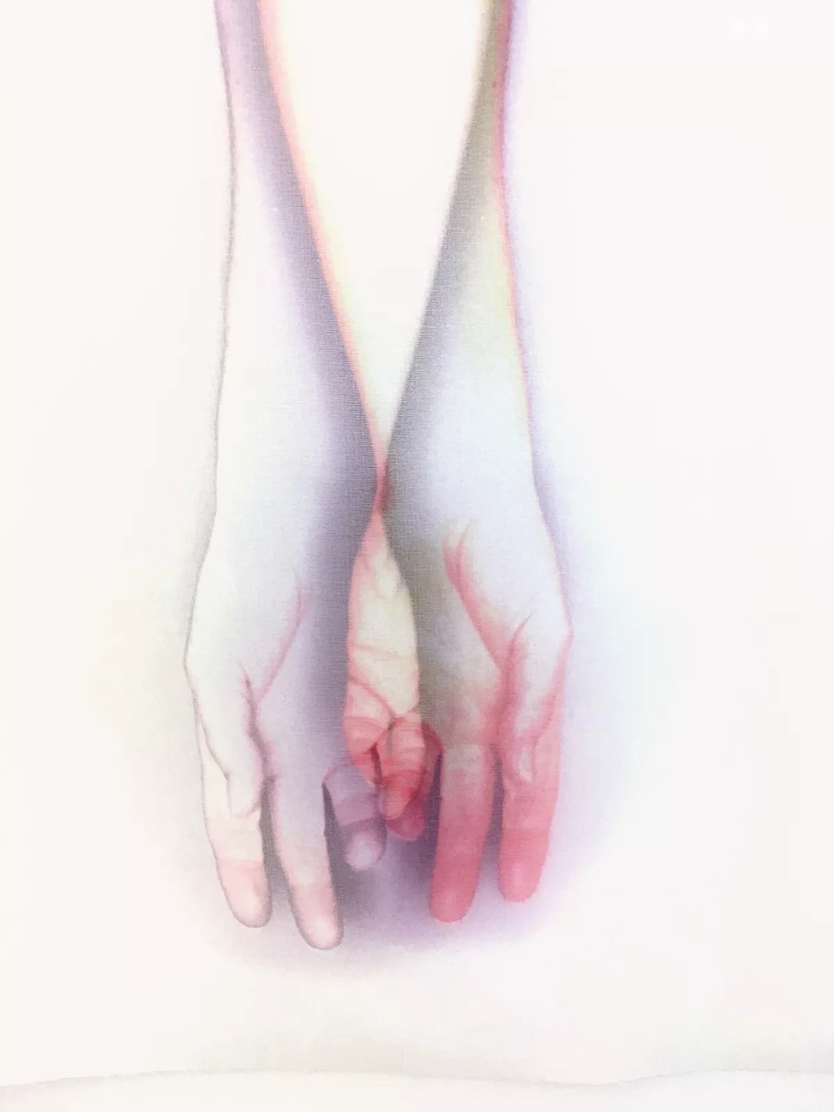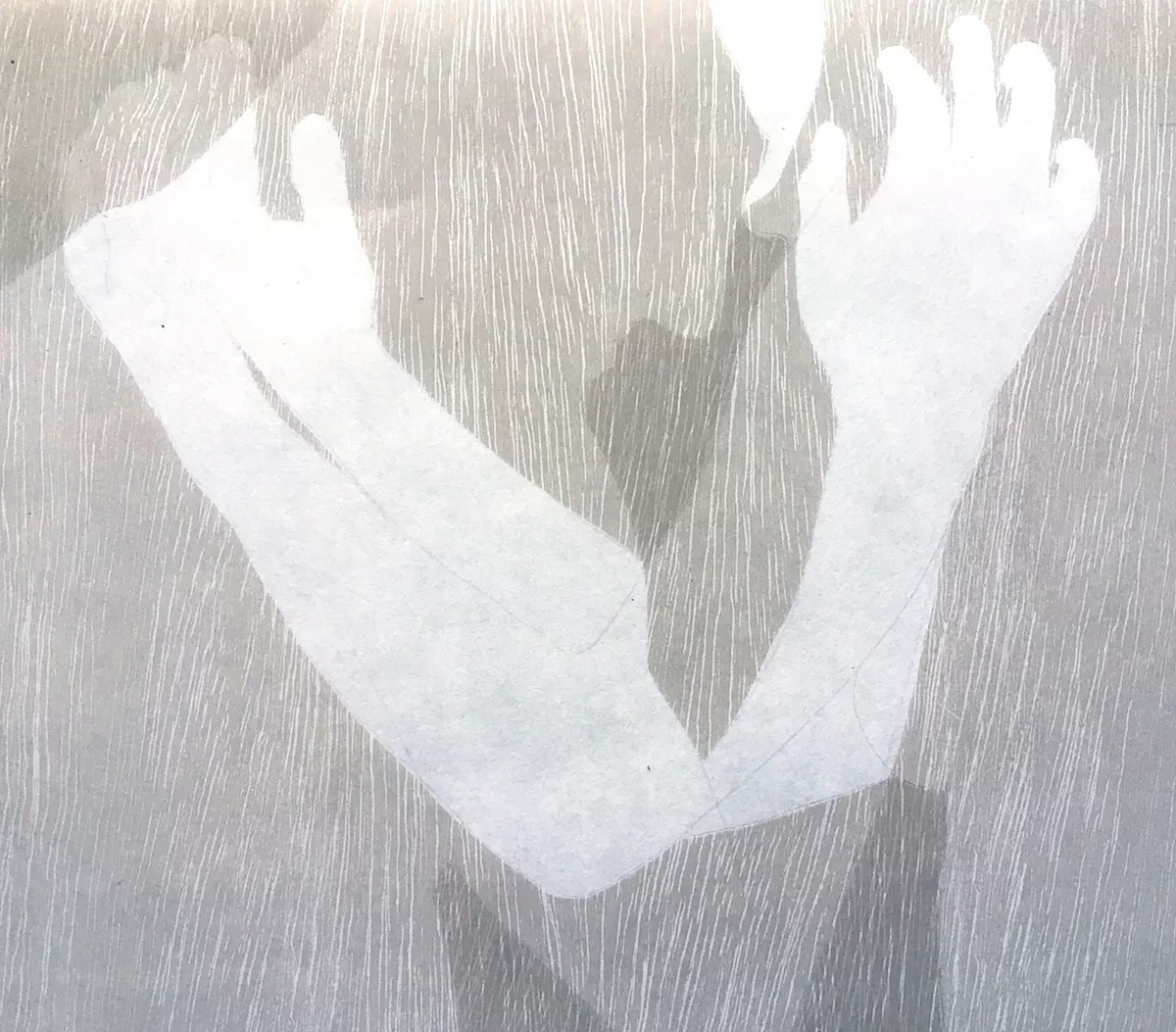Jennifer Ghormley, “Tender,” two-layer stencil woodblock print on Thai mulberry paper, 2018.
