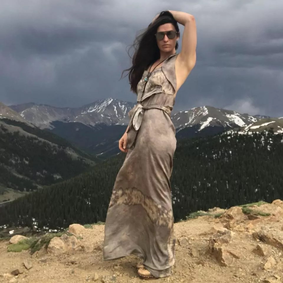 Fashion designer and slow-fashion activist Baily Rose grew up in the Colorado Rockies, a background that infuses her loose, sensual, ecological and ethical styles, which she handcrafts and often models herself against stunning mountain scenery.