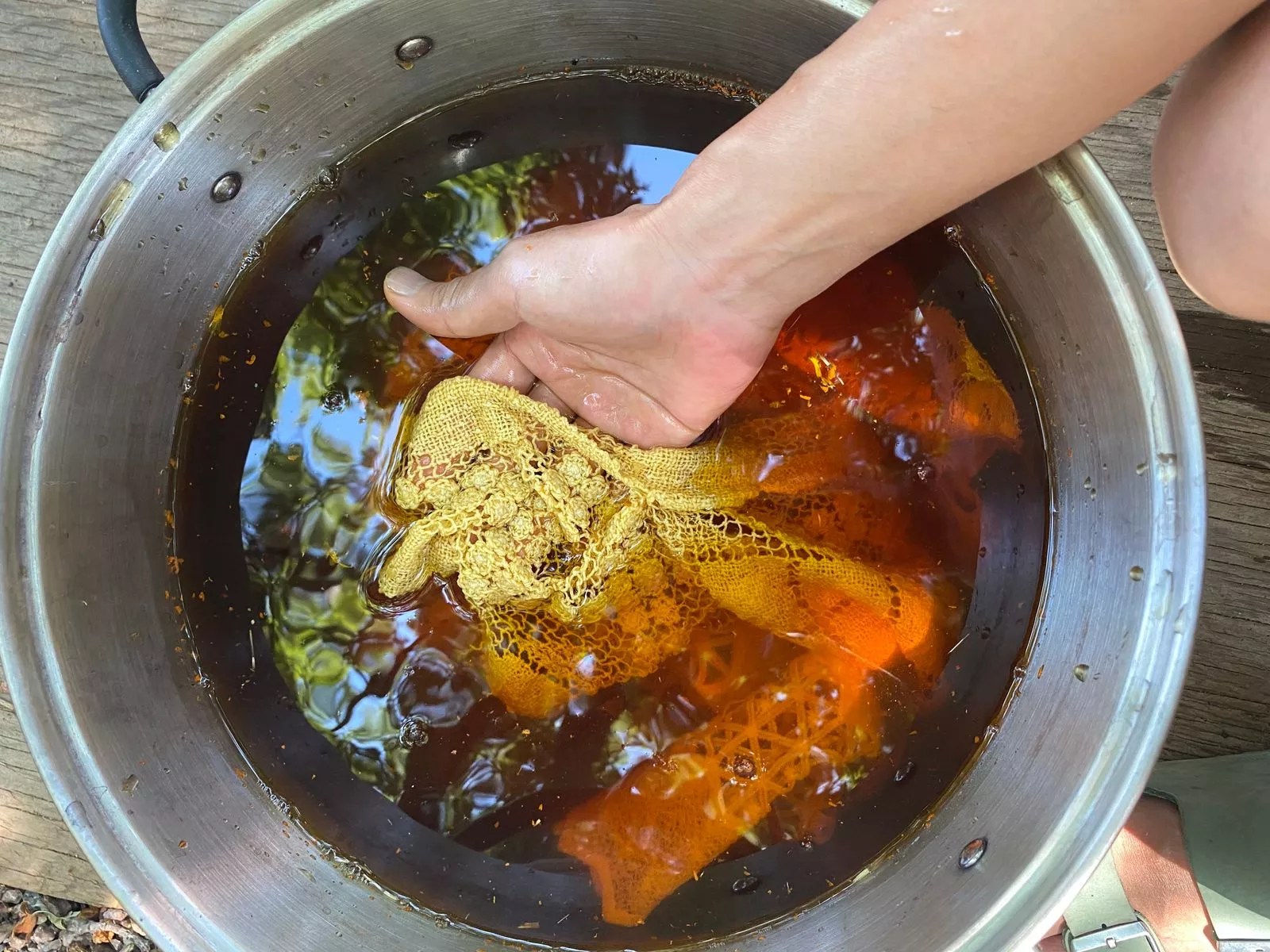 Maki Teshima uses natural dyes to prepare textiles for artworks and clothing.
