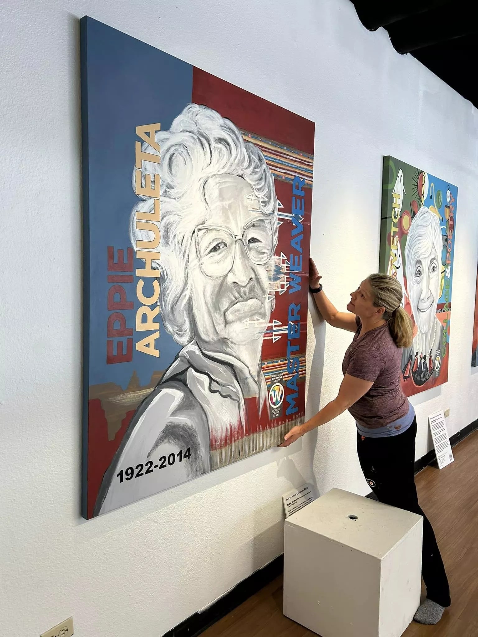 The Women’s Caucus for Art Colorado surfaces again with a tribute to women artists living and working in our state, this time with a focus on the organization’s eleven-artist mural team. Each artist has painted a travel-ready, mural-sized portrait honoring an exceptional past or present Colorado woman artist for the touring exhibition. The works are rendered in a uniform format, with black-and-white likenesses set off by brightly colored backgrounds. On October 17, a talk and slide projection with the muralists at 4 p.m. will reveal the stories behind each mural subject; a reception follows.