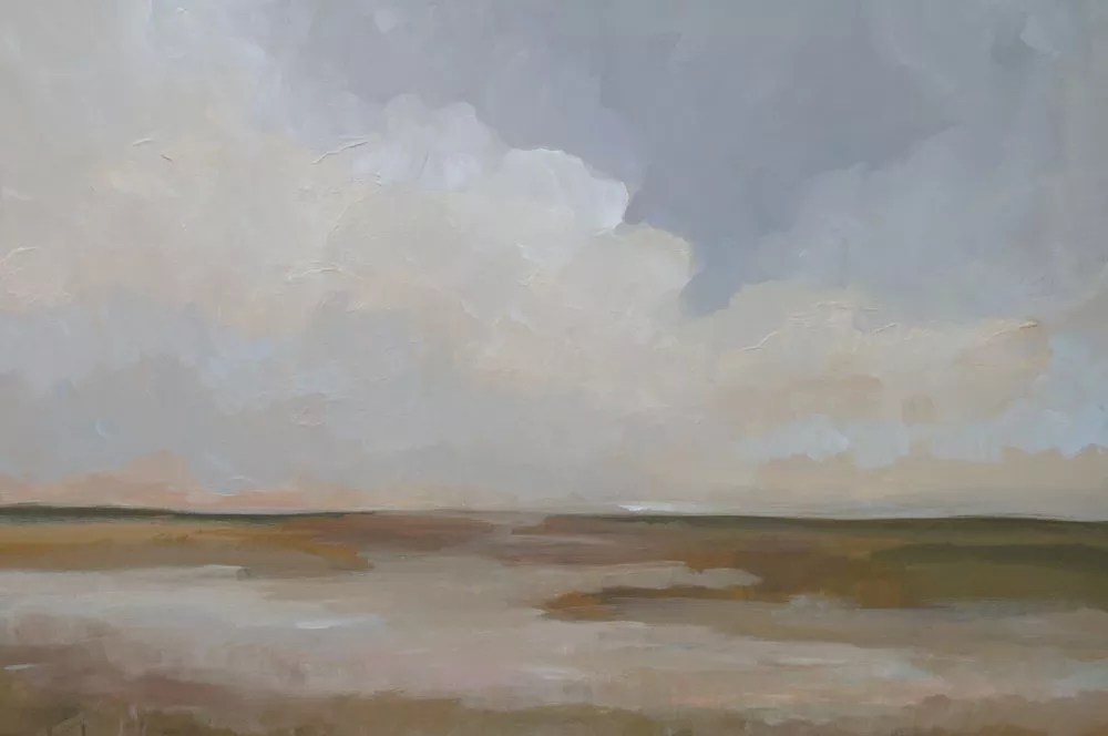 Bell Projects is on a roll with landscape shows, and the latest is Horizons: The Art of Natural Landscapes, a subtly beautiful body of work by Lauren Fuhr. Where the former duo highlighted bright greens and blues, Fuhr favors the palest earth tones and muted patches of blue skies behind towering cloud banks touched by sunlight. This one is restful and easy on the eyes.