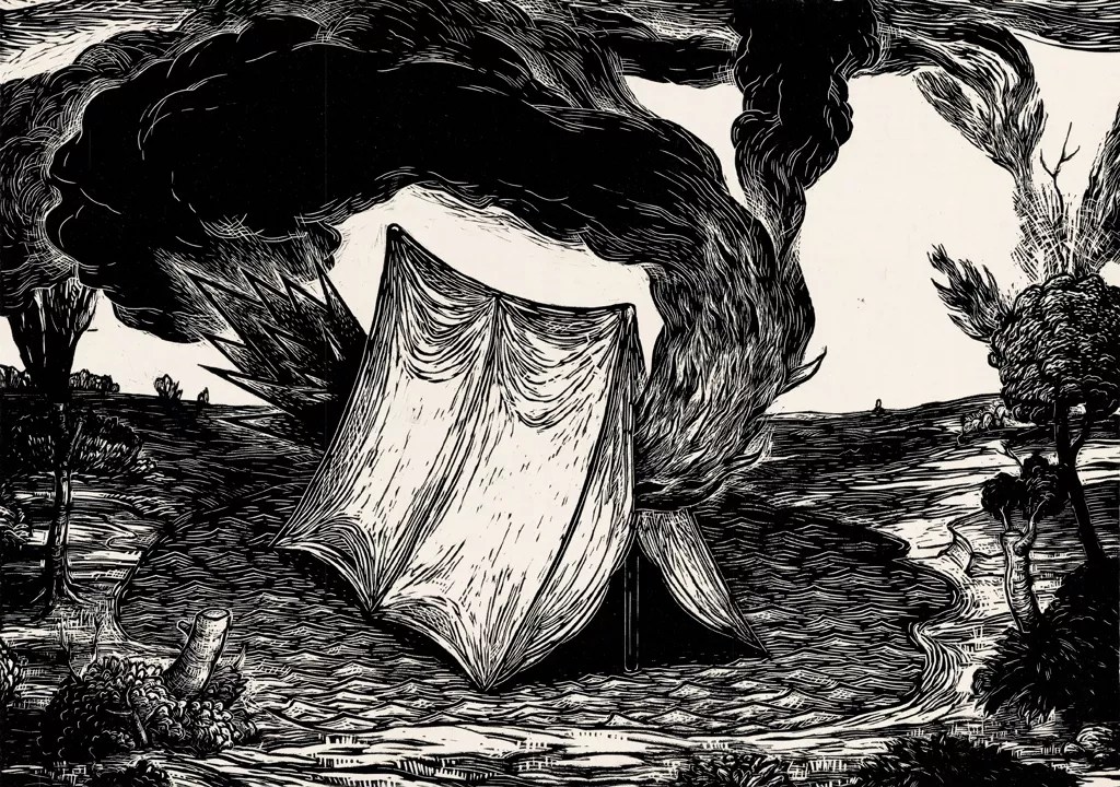 Master printmaker Sean Caulfield’s “Fire Tent.”
