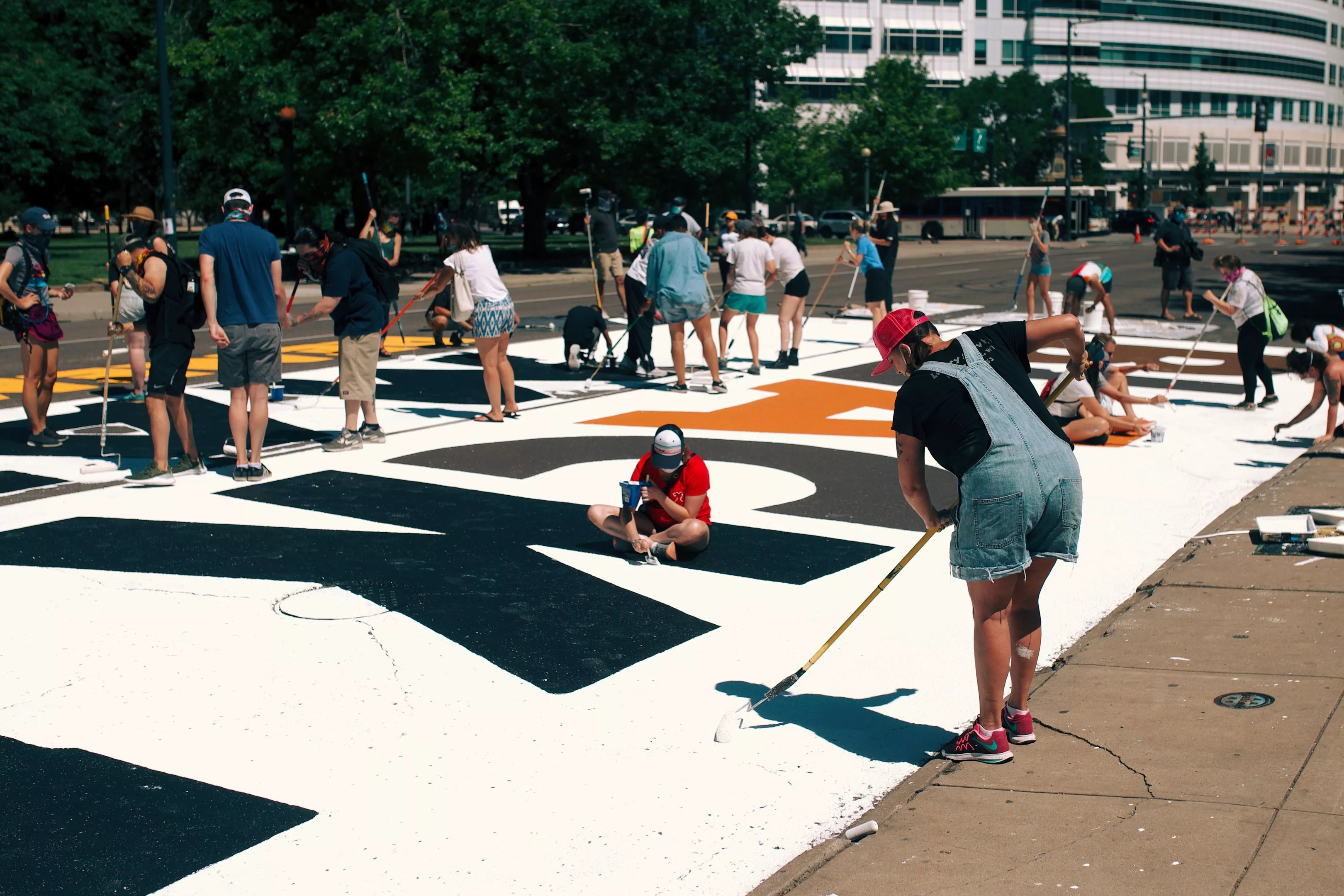 The city temporarily closed down a section of Broadway to bring together artists and community volunteers to paint a Black Lives Matter street mural.