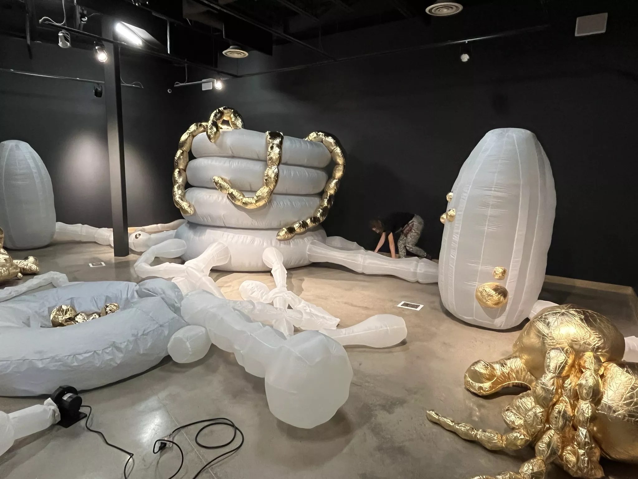 Setting up Nicole Banowetz’s inflatable installation for agriCULTURE.