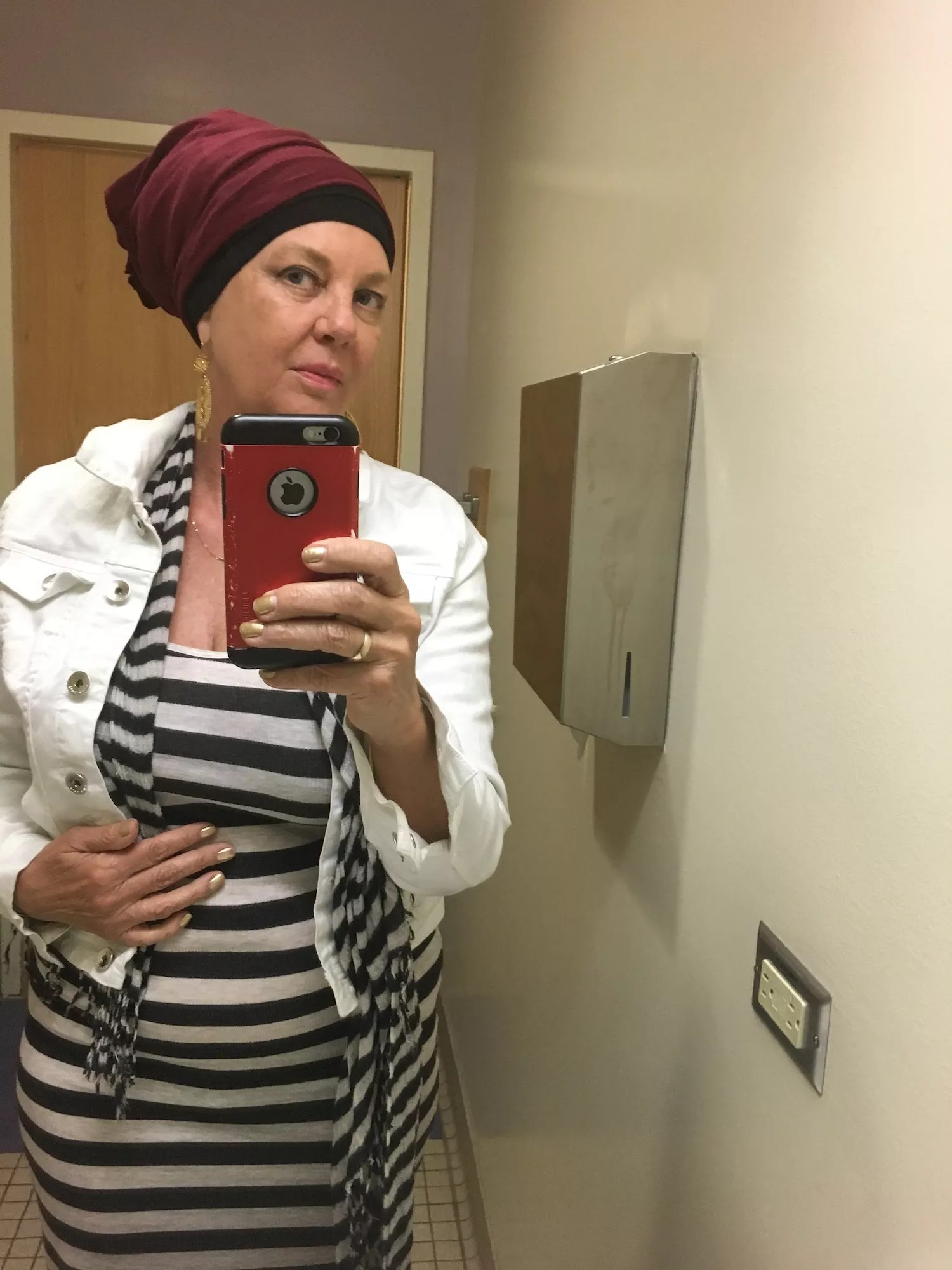 Vukadin-Hoitt dons a head wrap as her cancer journey continues.