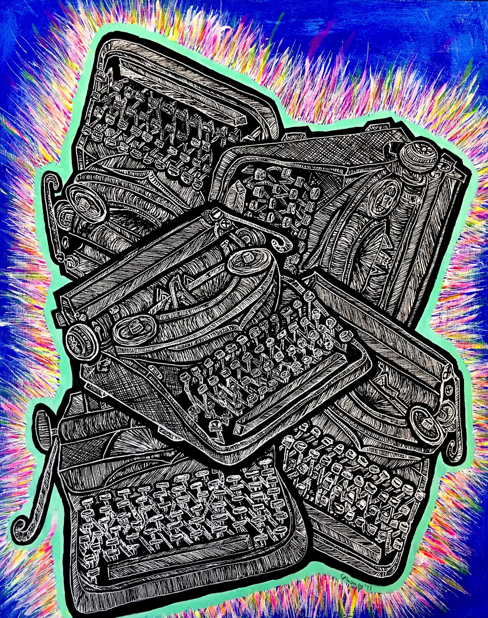We are currently working on releasing a new spoken-word/poetry record titled Dead Granny’s Reading Glasses. It’s a continuation of our Tales of Any Every multimedia project about an artist reflecting on living and growing old in the middle of the changing landscape of Denver. We will be rolling out more art shows at the beginning of the year and releasing a line of linocut block-printed hats and T-shirts in the near future. We are also going to put out digital releases of hours of Vincent’s soundscape music, starting at the beginning of 2018. Just trying to keep really busy and involved.