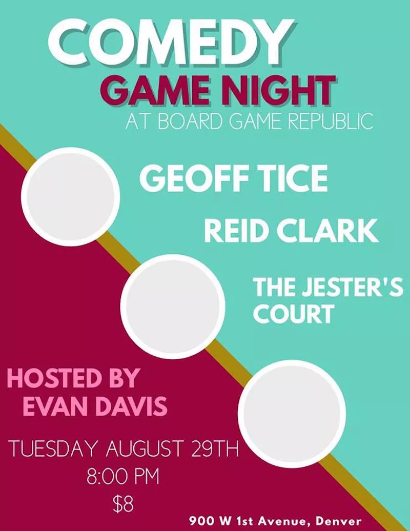 Having recently celebrated its first anniversary, the good times are just beginning at Denver’s Board Game Republic. Tucked into an overlooked corner where Baker and the Santa Fe Arts District overlap, the Board Game Republic shelves are stocked with tabletop favorites as well as obscure games from all over the world, and the pub’s events calendar is always bustling with activity. On Tuesday, August 29, Board Game Republic is bringing back its Comedy Game Night, and this time the event will spotlight local standup Geoff Tice along with the well-traveled Reid Clark to get on the mic and crack wise. With a full bar and dinner options – the spot is particularly proud of its milkshakes- the Board Game Republic has everything you need for a night of gaming and guffaws. Visit the Facebook events page to learn more.