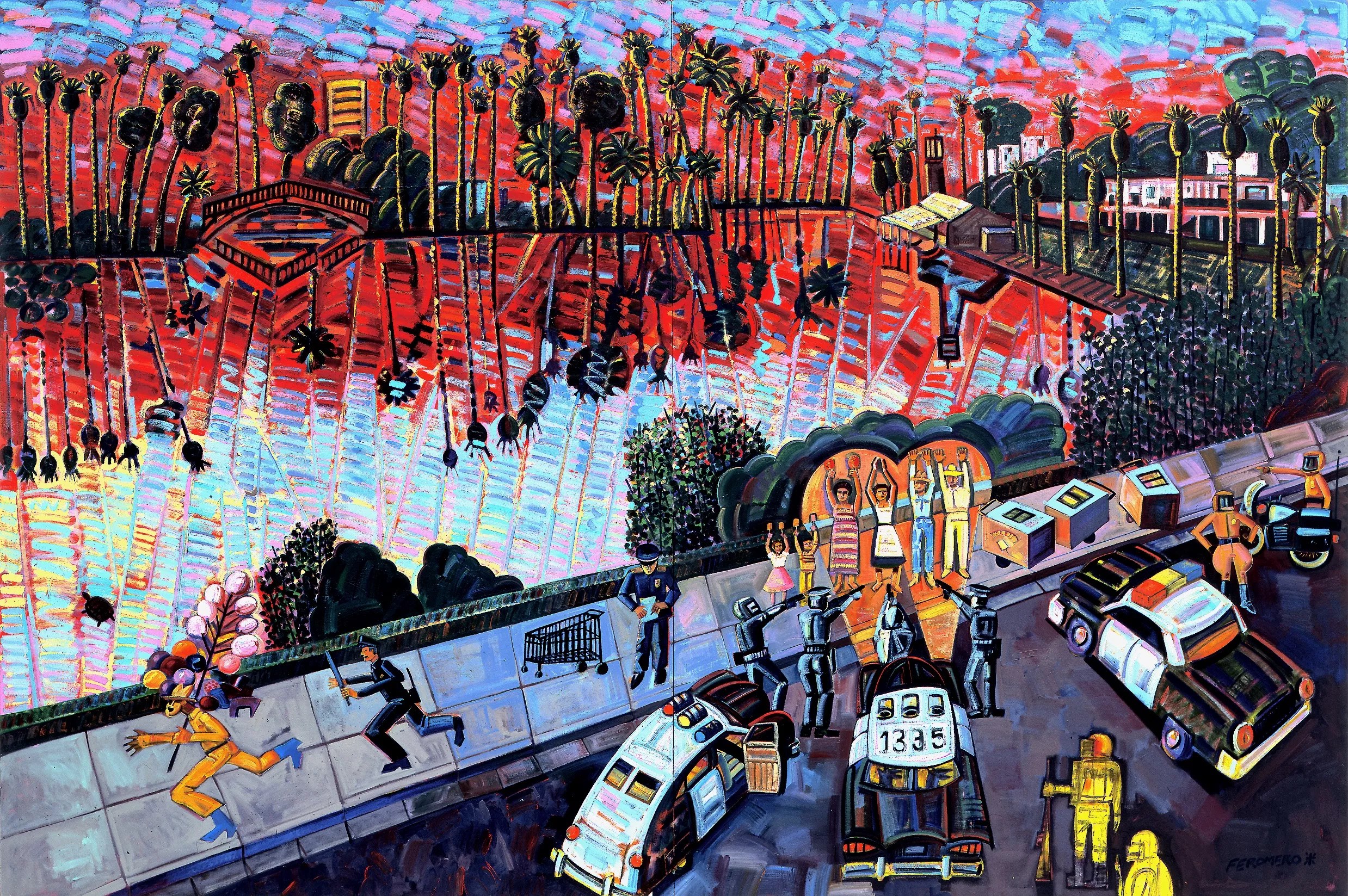 Yeah, I think that was one of my first inclinations toward art. I remember going to Mass when I was young, like seven, maybe, and it took forever, you know, it was going on and on, and I remember looking up at the ceiling. It was painted, and there were saints kind of walking around in the clouds wearing sheets, and I’m looking at it and I was like, “Why are they barbecuing that guy in the corner? What’s up with that?” [Laughs.] So right away I was intrigued. That was the beginning. By the time I found the Chicano painters, I knew about art. I knew about what good painting was, because I’d spent all that time going to museums all those years.