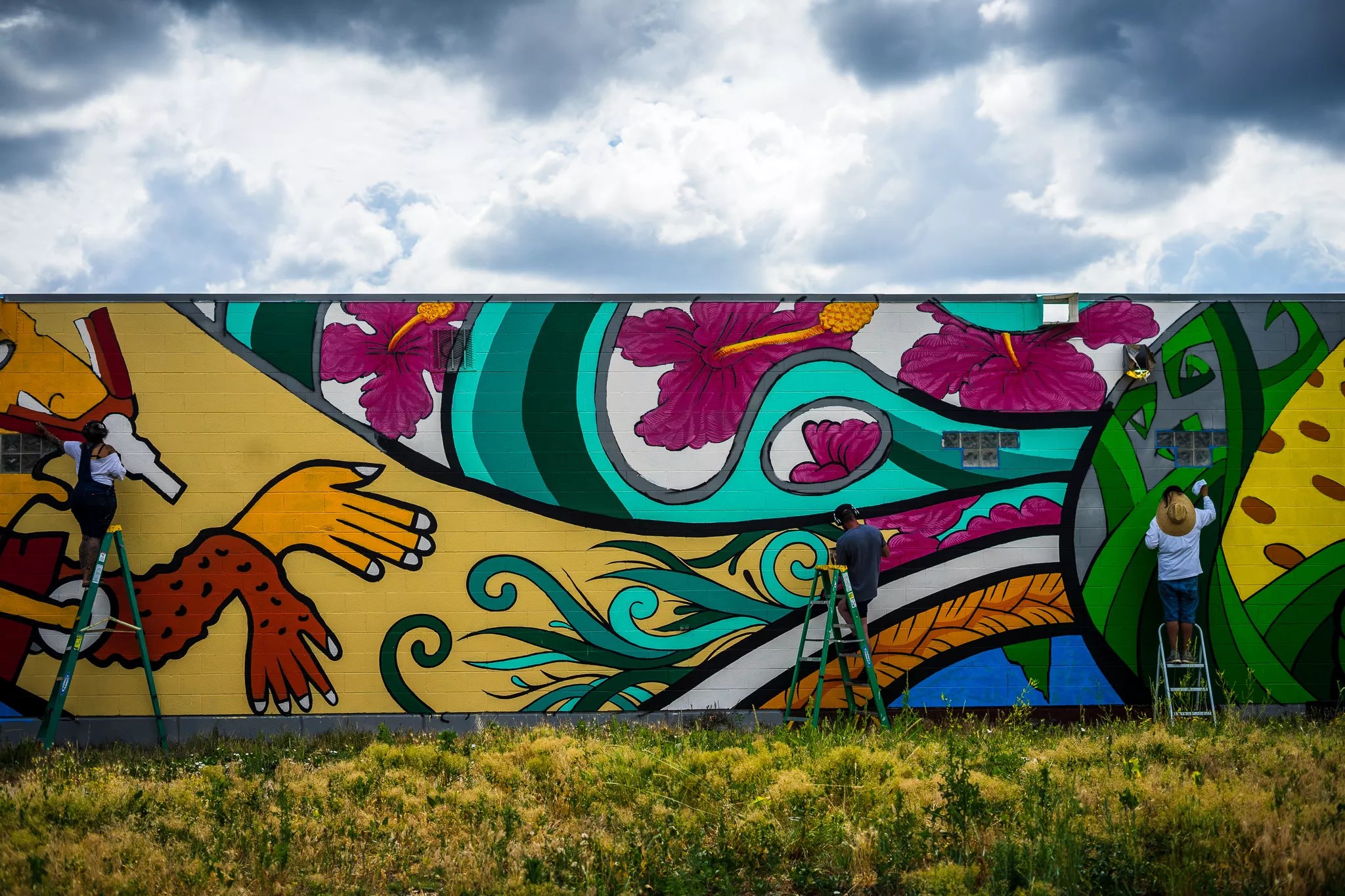 At the end of June, the artists worked over a week — day and night — to cover the massive wall. “We had to do a mural about rebirth, because that’s what we’re trying to do,” explains Cardenas. “That’s pretty much the direction we were given.”