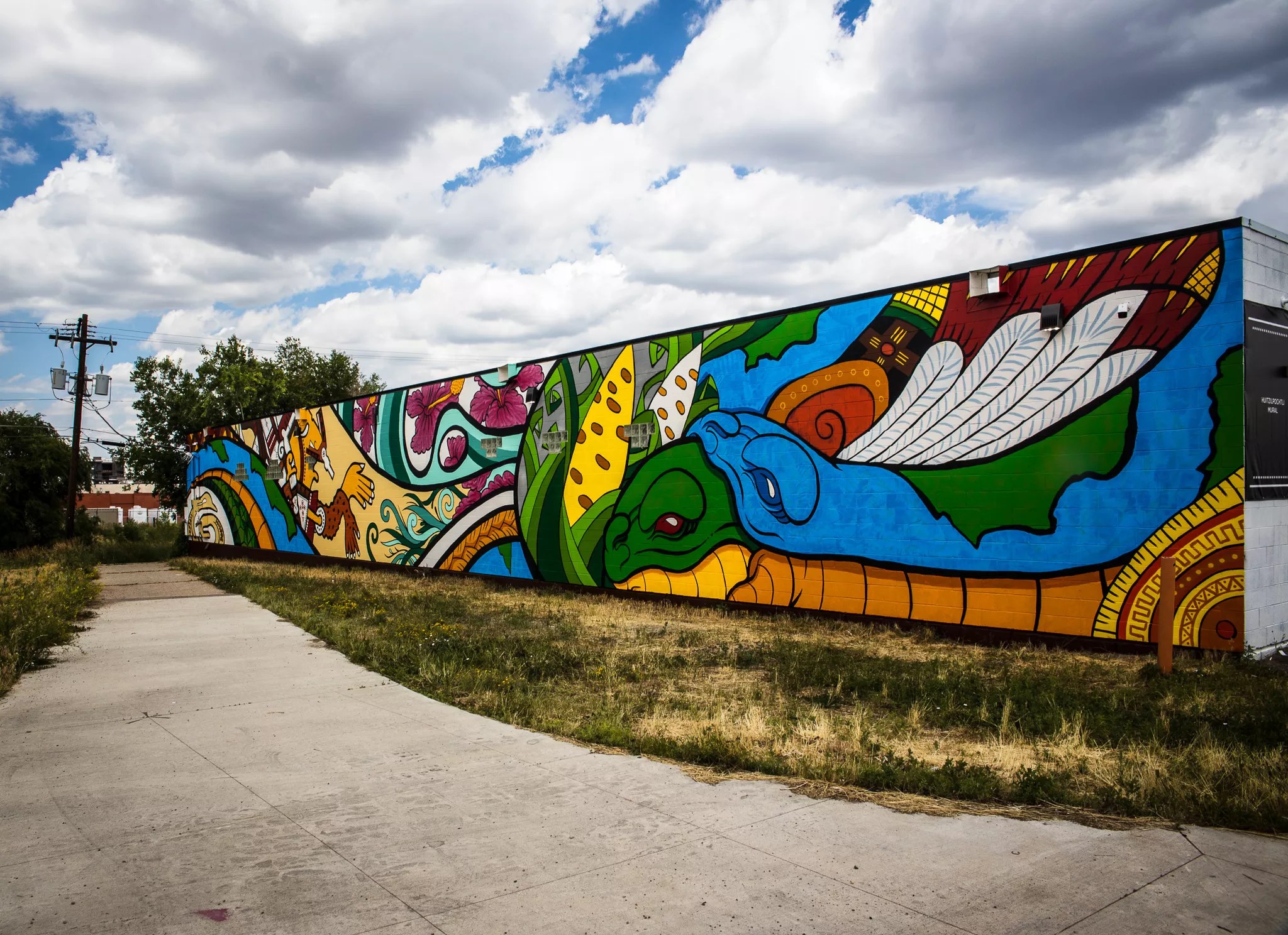 From 2008 to 2020, a vibrant depiction of Aztec Earth goddess Coatlicue and her son, Huitzilopotchli, the hummingbird god, graced a building at 938 West Eighth Avenue, just east of Federal Boulevard in the Sun Valley neighborhood. Sisters of Color commissioned the piece by David Ocelotl Garcia for its community center; “Huitzilopotchli” was his first commission, and in it he paid homage to his own mother, depicting her as Coatlicue.