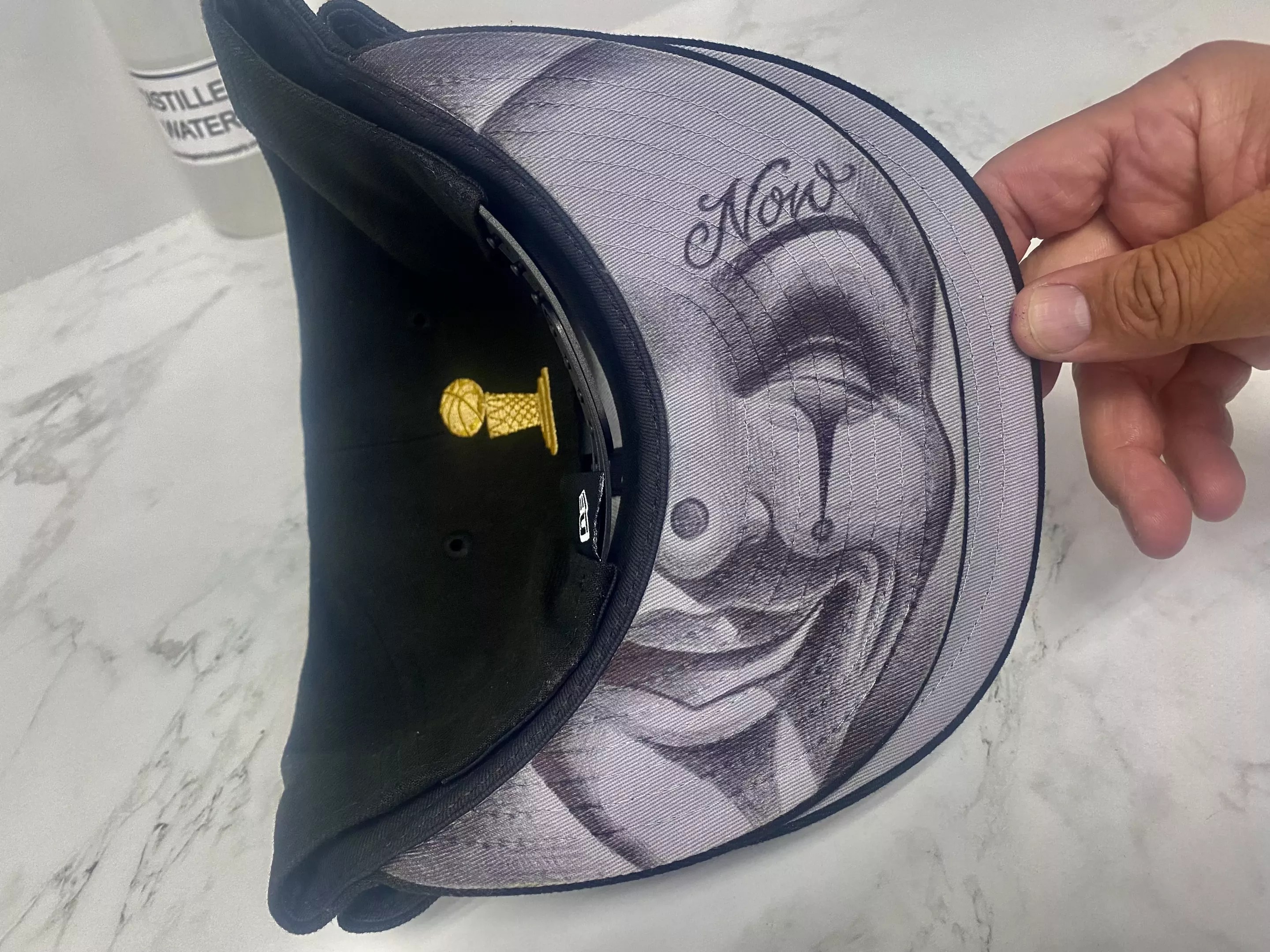 “It was a prison thing. They’d get them in prison and draw on them and send them home. They’d wear them or hang them out their back pocket. My new thing is I do hats or shoes with a ballpoint pen,” he says.