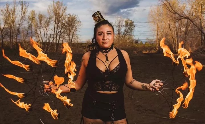 While burners are passionate folks, no flow artists are more serious about their craft than the ones who enter circus performance, such as Stephanie Marie Little Thunder Morphet-Tepp — or the Flying Brain — who’s lived in Colorado for thirty years.