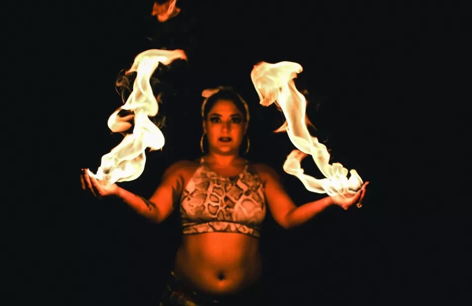 Straddling circus and flow arts is Candela Collective, a troupe formed in 2017 by Tani Korb, Zoe Kouremenos and Drea Adair. The collective specializes in aerial as well as fire performance, and as often happens with flow arts, it came together through chance.