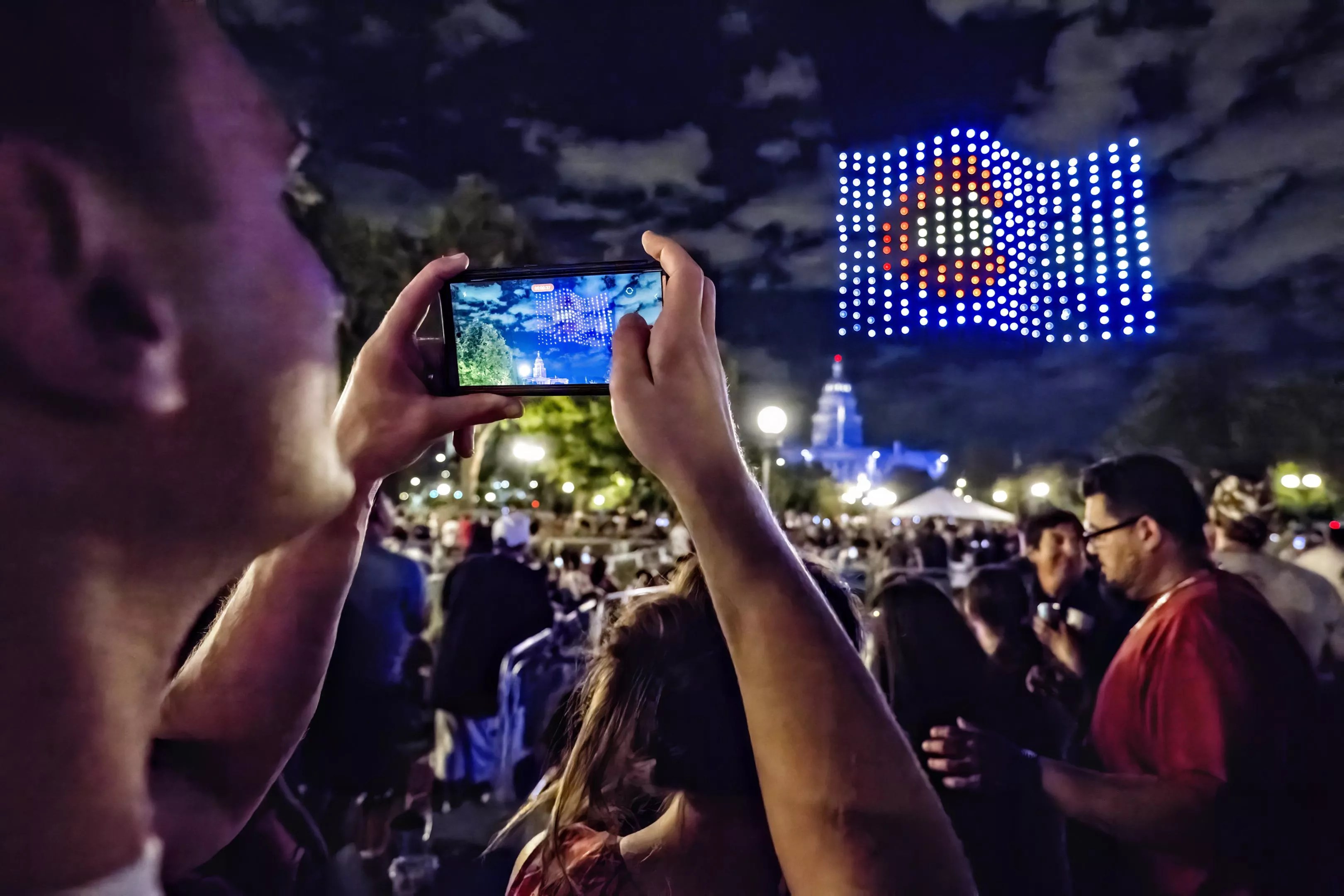 On the evening of July 3, 300 drones equipped with LED lights took off from Lincoln Street in celebration of Independence Day. They were programmed to illustrate iconic American and Colorado landmarks over 200 feet in the air.