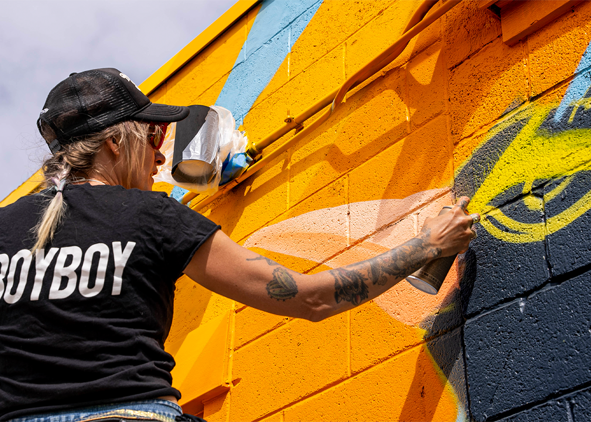 “It’s really exciting to create another [mural] and have that representation of Native, Indigenous art in Aurora,” she says, “[but] they should be creating opportunities for Native people. … I’m trying to get a meeting with city council to discuss their issues with [acknowledgment]. I’m taking up space as an artist in the city of Aurora, and I’m really happy about that, but there’s still a lot of work to be done when it comes to recognizing diversity in that town.”