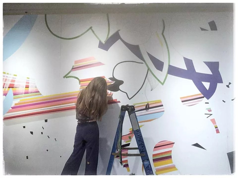 Aell creates an indoor mural for the Arvada Center’s In Sight On Site exhibition.