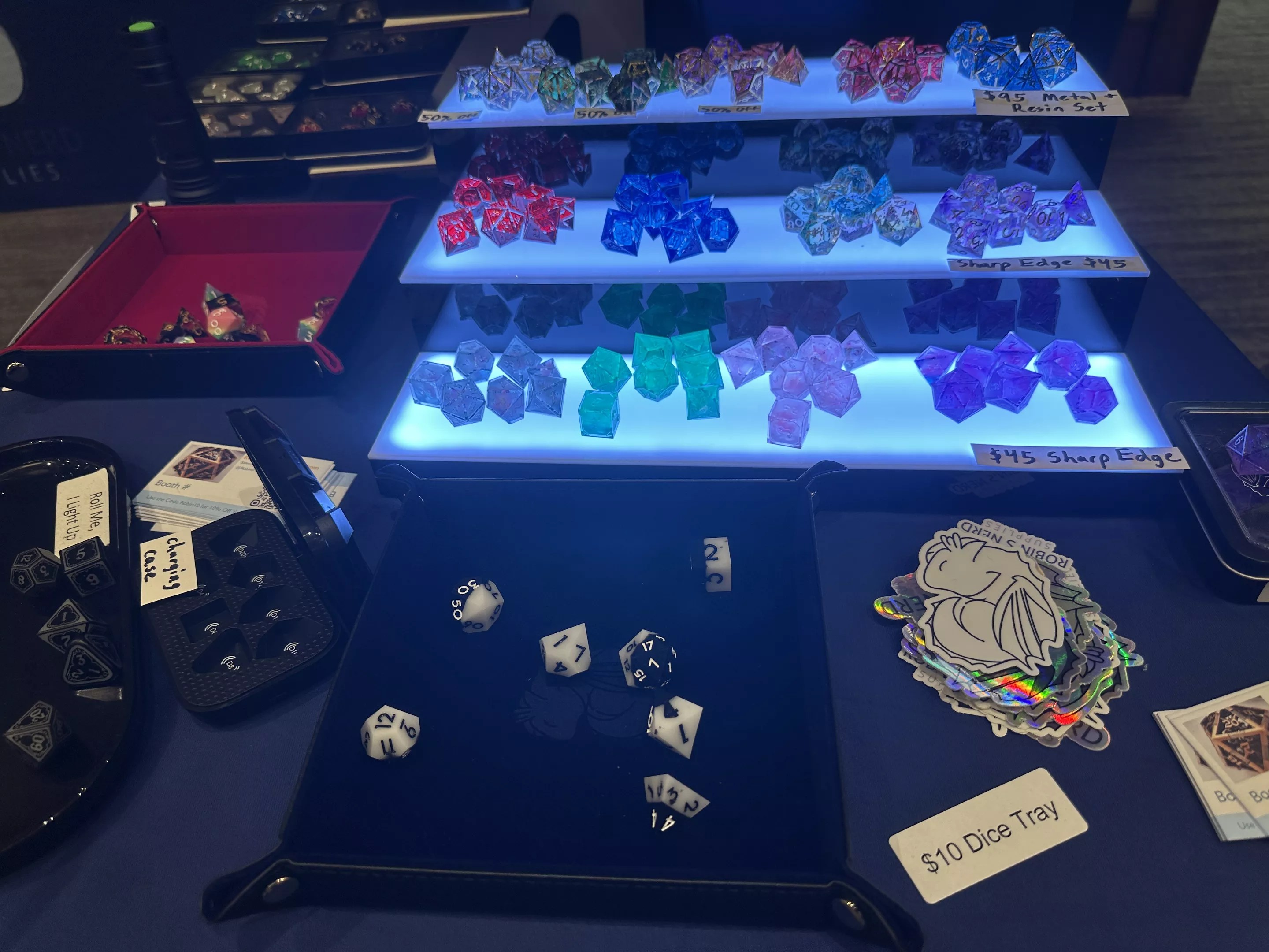 They’re the polyhedric necessities of the gaming life, and a gamer’s relationship with their dice is one fraught with complex emotions. It’s not often that we possess objects that carry with them such power and personality that, when they randomly fail us at a crucial moment, we feel the need to punish them by putting them away-or even in dice jails. (Yes, those are a thing.) Robin’s Nerd Supplies has attended Denver gaming conventions for years now, providing new dice that are pretty and shiny and promise to never let you down, really. Promise.