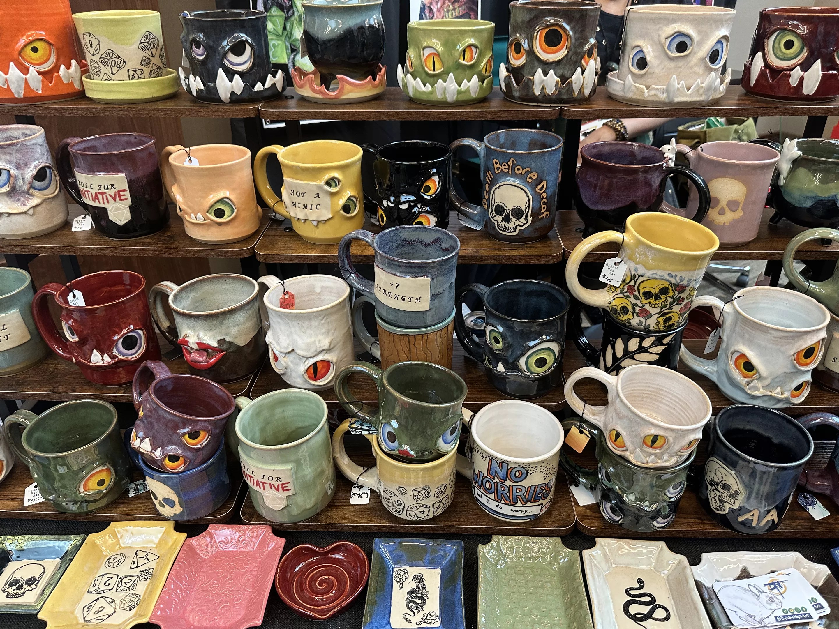 What’s a nerd convention without some awesome and quirky handmade stuff? Denver artist Debbie Ngo works in illustrating, ceramics, sculpting and even cake decorating – and this year, she had shelves full of products to amuse and amaze, from dice trays of various designs to mugs that eyeball those around you to flower pots that look a little hungry.