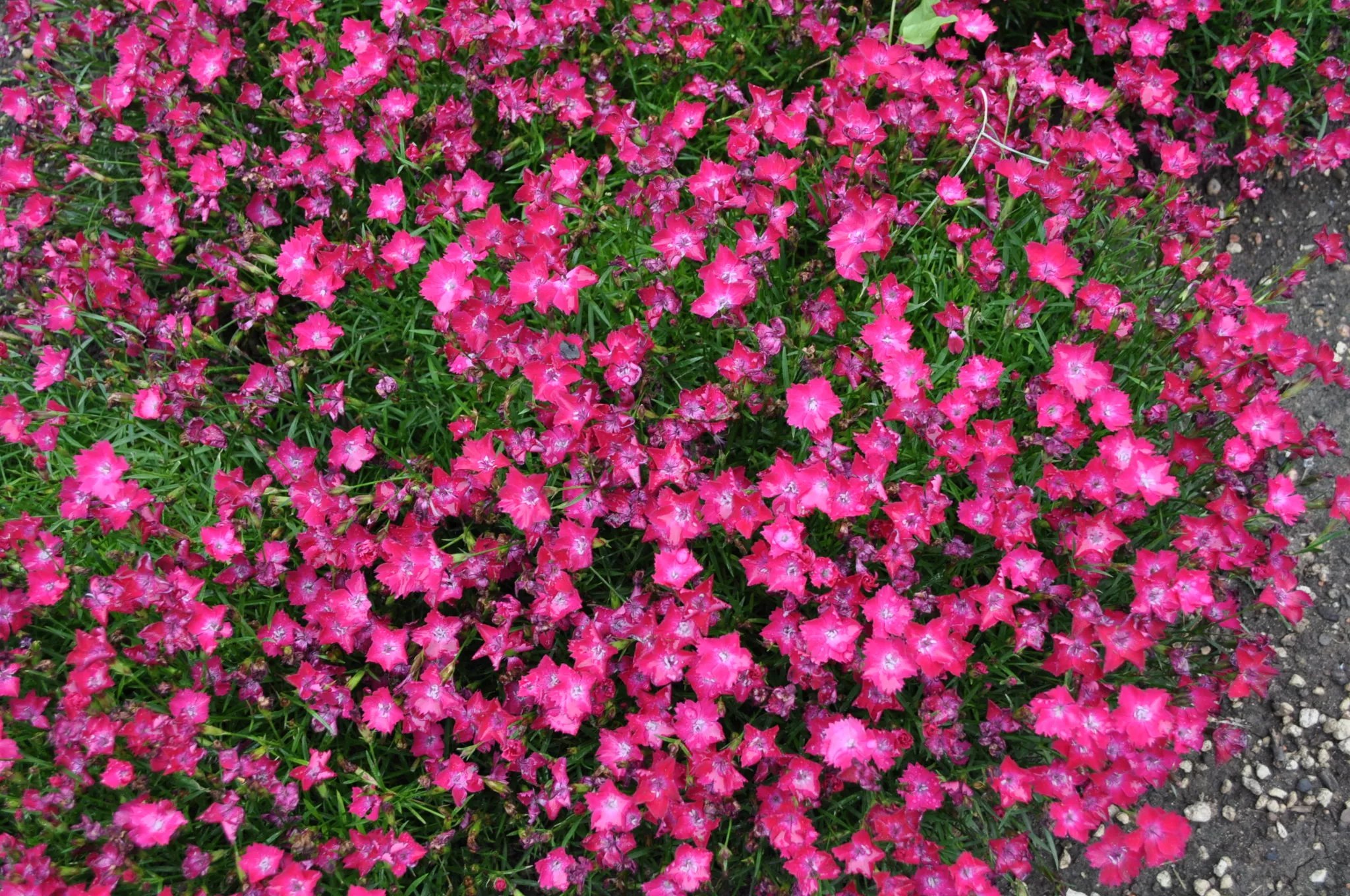Very showy in the spring, with a very vibrant color and attractive plants. Flower color was not a true scarlet but a beautiful shade of hot rose or cherry. Plants had superior winter hardiness that was consistent over three years and did not die out in the center, as did many other Dianthus. Plants were attractive even when not in bloom, with a nice tidy, compact growth habit.