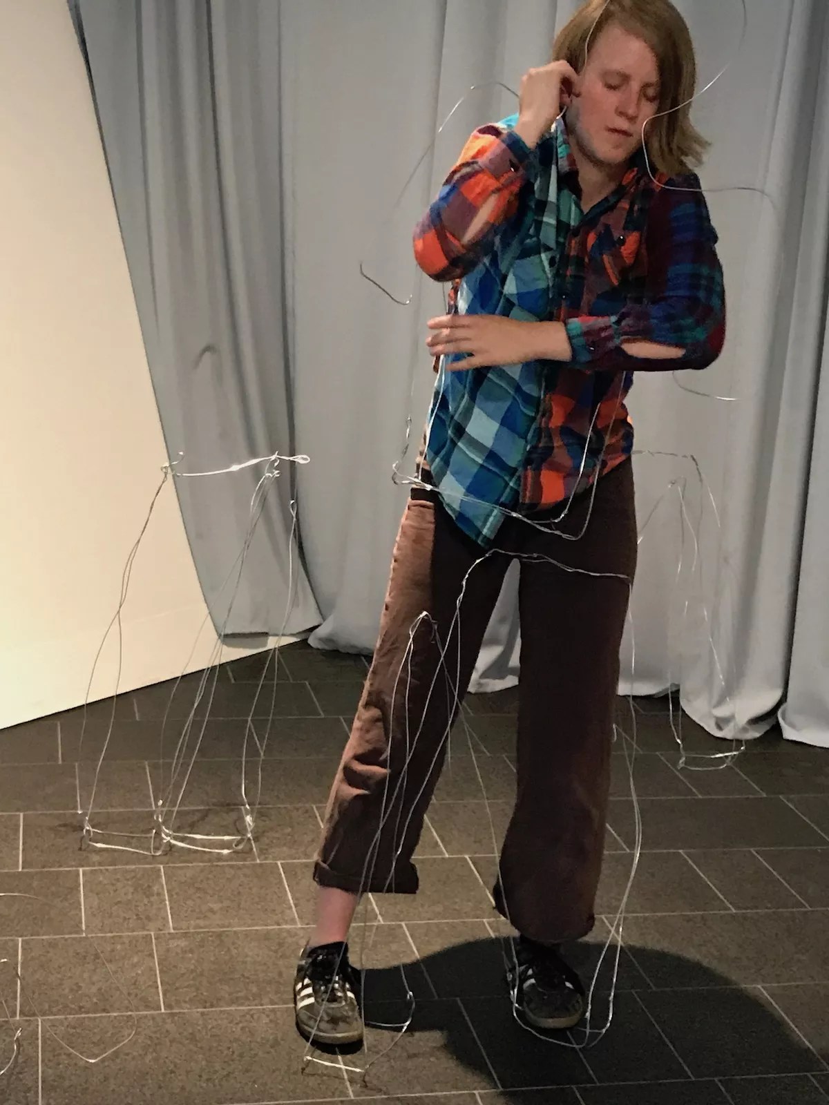 “The larger experience I’m curating is about being transparent, about process, and bringing people in to see that unfold: First, they can observe me in rehearsal, then we have rehearsals with interaction, where I’m letting people direct me,” Samuelson explains. “From there, we might go into the galleries and interact with artwork, and what if, instead of gazing at the art, you can imagine that the art is gazing at you. It relates to how you feel things, how they land physically inside you.”
