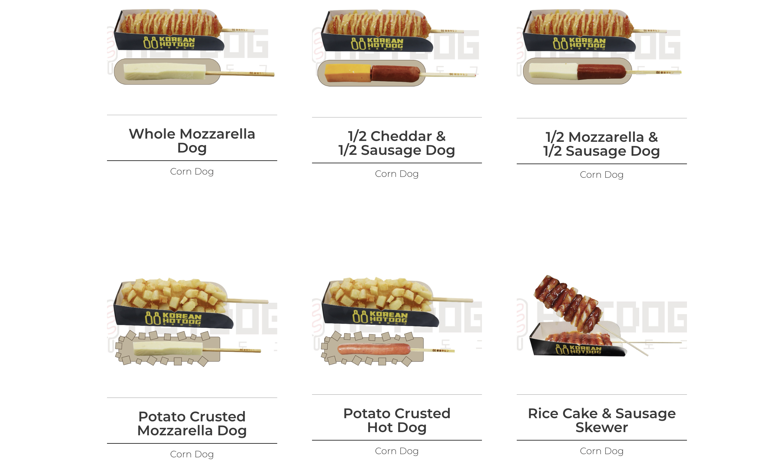 Juicy has a variety of corndogs.