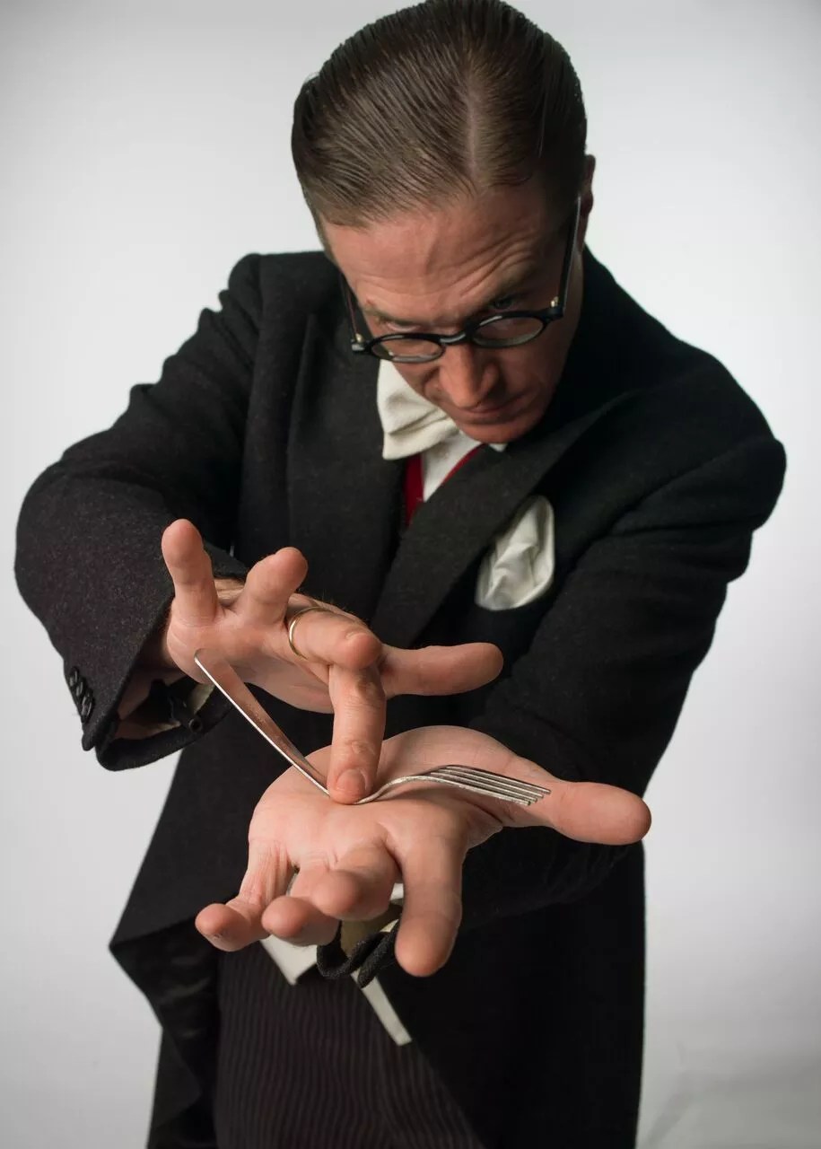Phelyx’s most famous trick is bending the prongs of a fork with his mind. Though he claims he’s bent more than 10,000 pieces of cutlery, he doesn’t believe in telepathy. He doesn’t even try to get around using his real name: Dick Phelyx Hopkins.