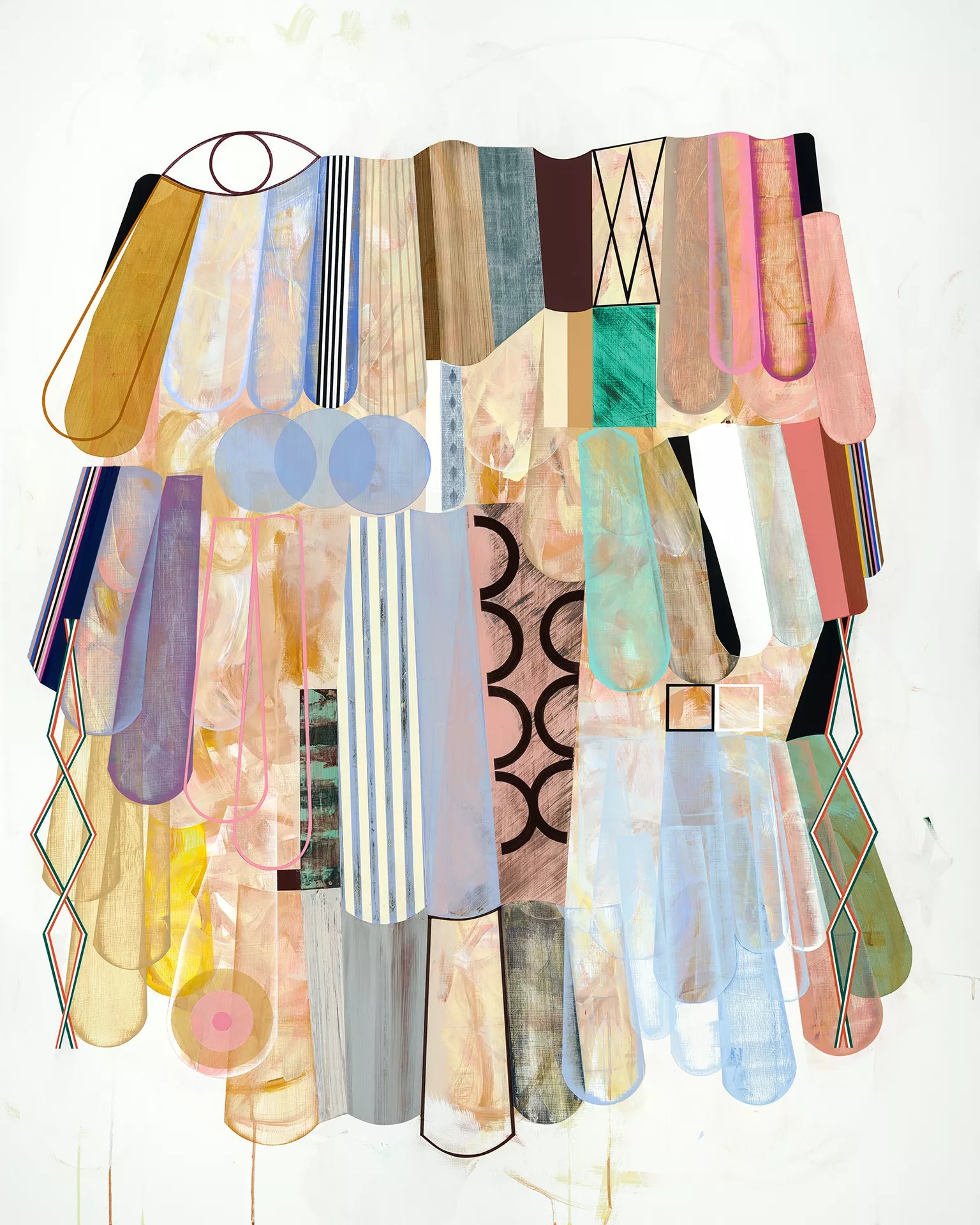 Alyson Khan, “Dream Dress (Portrait of the Artist),” acrylic, gesso, flashe on baltic birch panel.